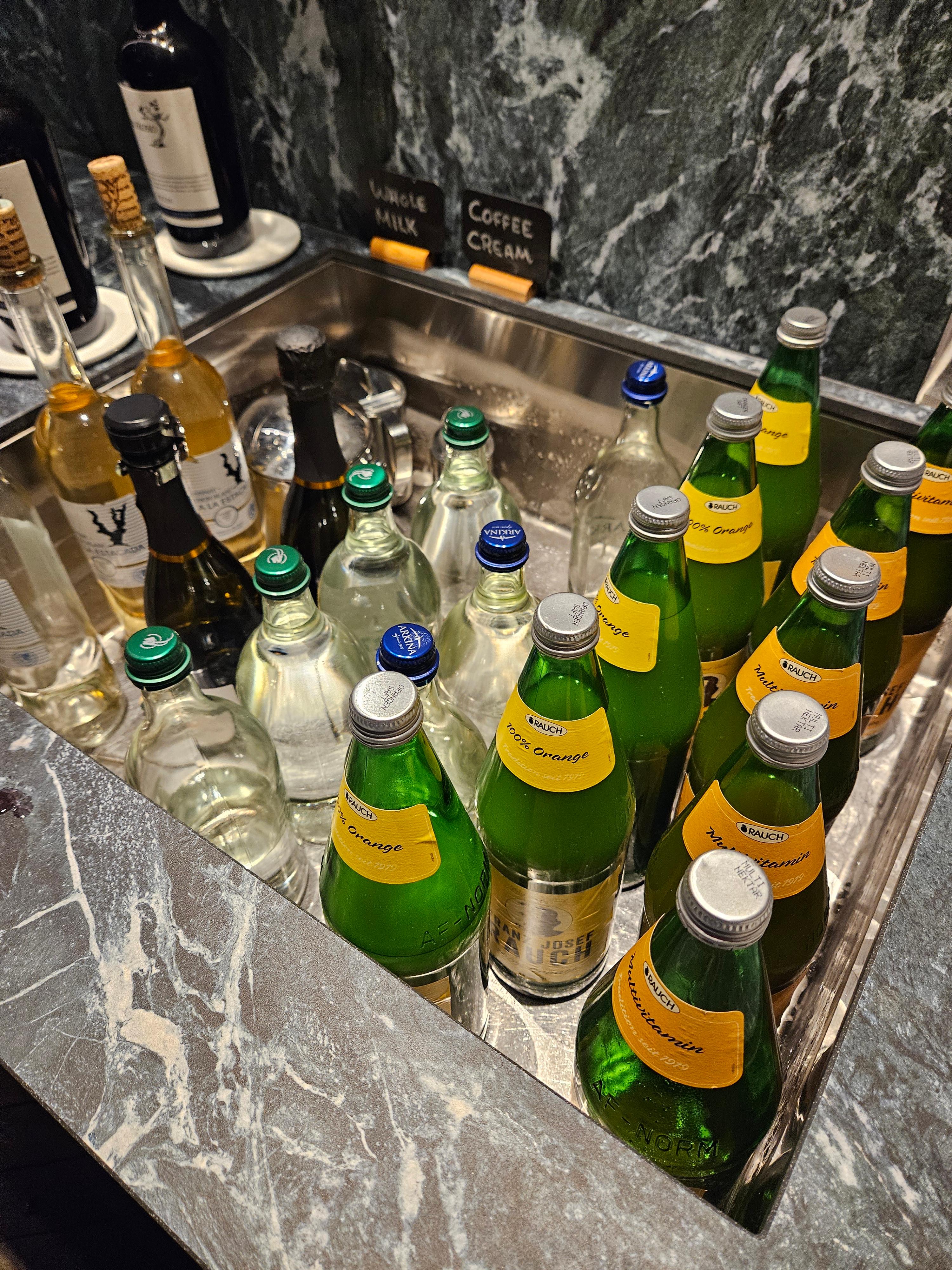 한국의 이그제큐티브 라운지와 비교해서 미국과 유럽의 라운지들은 매우 간소한 경우가 많습니다. 아침에는 간단한 대여섯 가지의 아침식사 메뉴, 저녁에는 주류와 간단한 핑거푸드, 그리고 커피와 티 정도가 대부분이고 한국에서의 의리의리한 메뉴는 없습니다. 개인적으로 메리어트 바젤의 M라운지는 여행객들에게 꼭 필요한 라운지는 아니라고 생각되고요, 다만 호텔에 오래 머무르며 일을 해야 하는 출장 여행객들에게 일을 할 수 있는 공간과 커피와 티, 다과를 제공하는 그런 느낌이라고 보시면 좋을 것 같습니다. 다만 M라운지 입장이 가능한 방과 그렇지 않은 방의 차이가 12만 원부터 시작이고 2명이 커버되니 아침식사와 저녁에 술 세네 잔 정도 먹고 마실 수 있으면 아주 나쁜 선택은 아닐 것 같습니다.