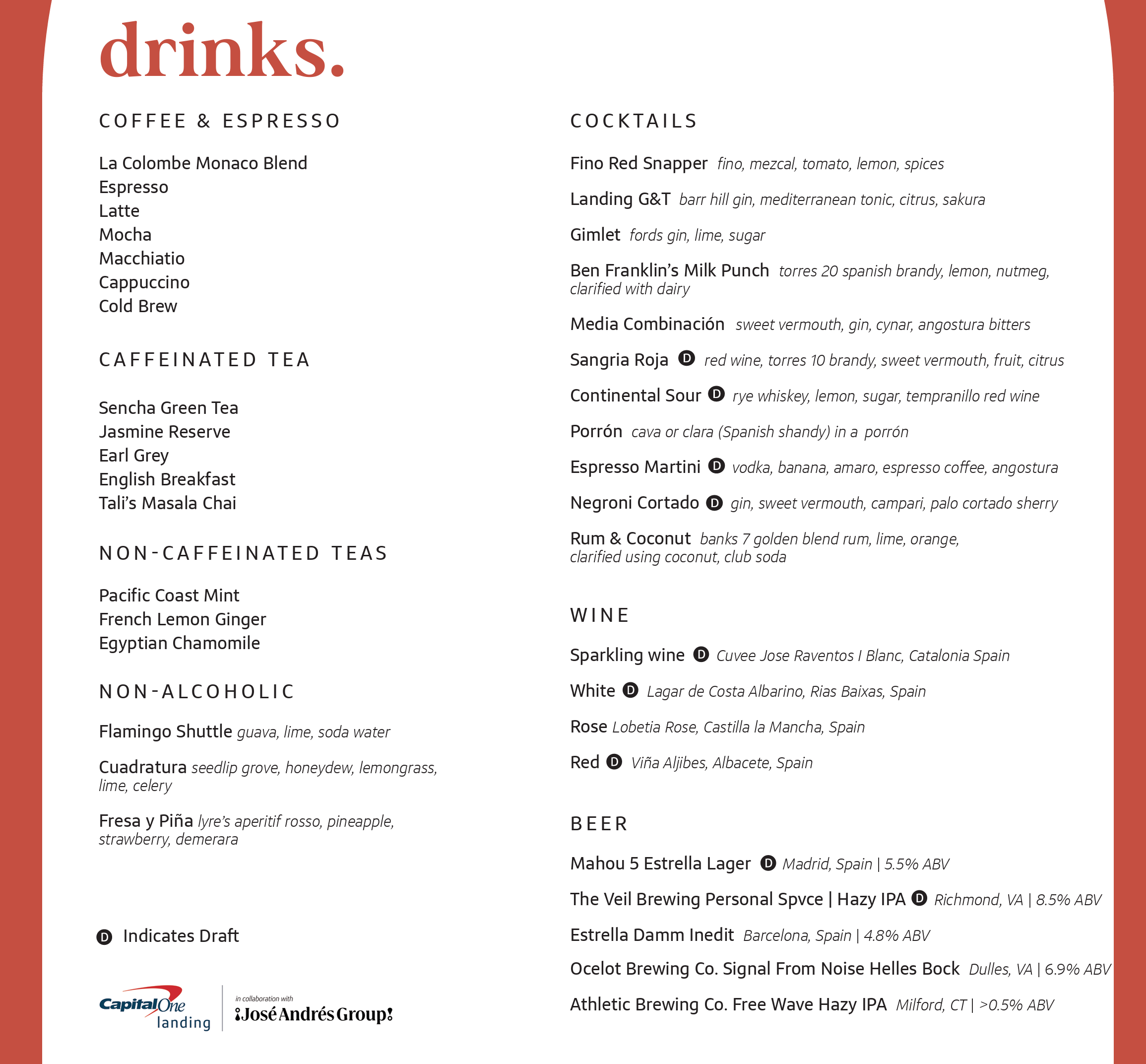 캐피탈 원 랜딩 워싱턴 D.C. 메뉴, image courtesy of Capital One