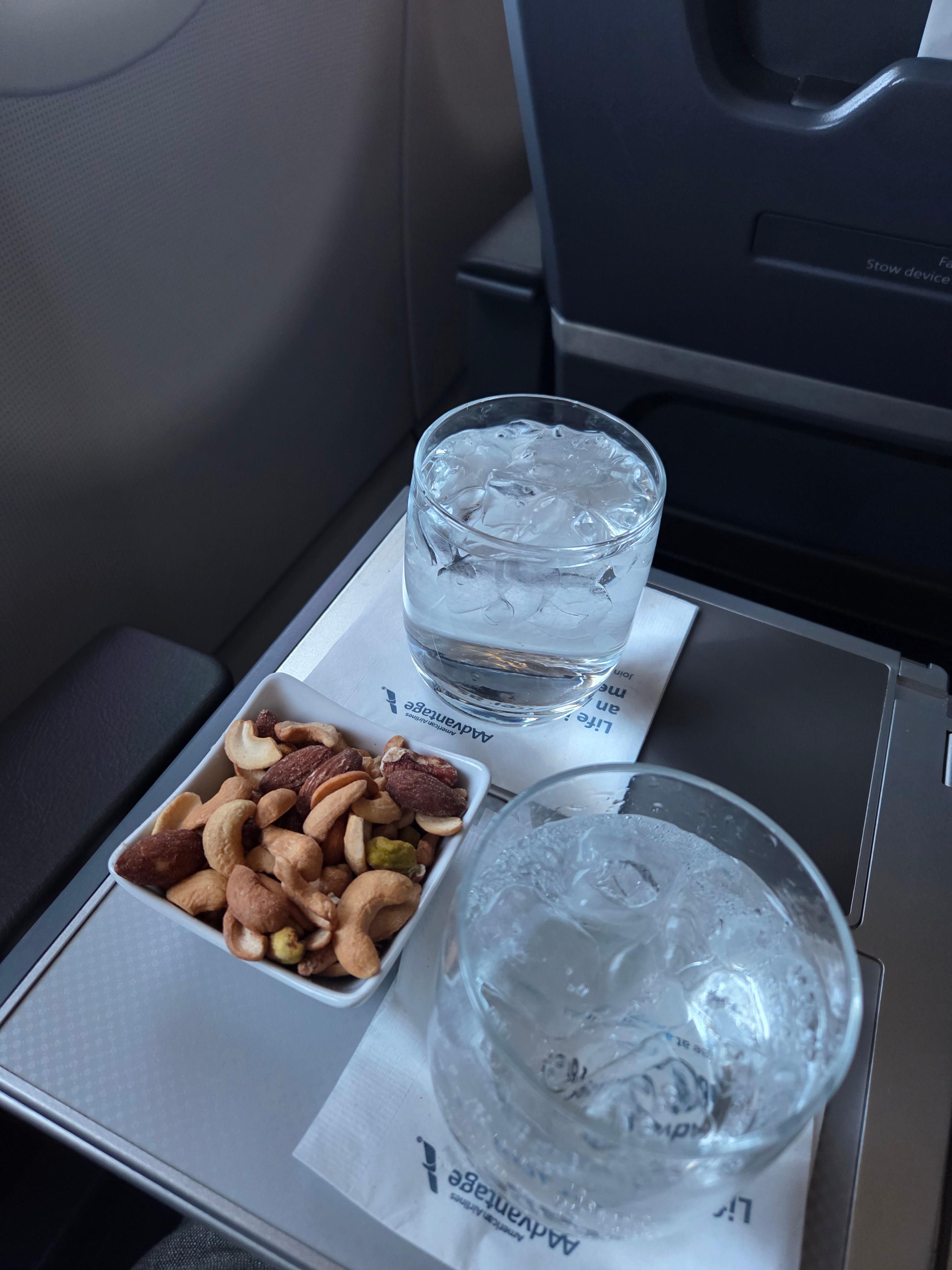 아무래도 미국 국내선 일등석은 일등석이라는 브랜딩이 되었지만 기껏 해봐야 장거리 프리미엄 이코노미 정도의 서비스와 좌석이 제공된다고 생각해야 합니다. 유상 발권을 하게 되면 이 노선의 일등석 편도 가격이 약 400달러 정도로 이코노미의 3배 정도 되는데요, 아메리칸 항공 엘리트 회원으로 메인 캐빈 엑스트라를 무료로 지정 가능하기에 3배나 되는 돈을 더 주고 일등석을 굳이 타는 경우가 있을까 싶긴 합니다. 무료로 업그레이드되어 이코노미 가격을 주고 탑승하면 8점까지 줄 수 있지만, 돈을 내고 탑승한다면 6점 정도 줄 수 있는, 그래서 7점이라는 점수를 주게 되었습니다.