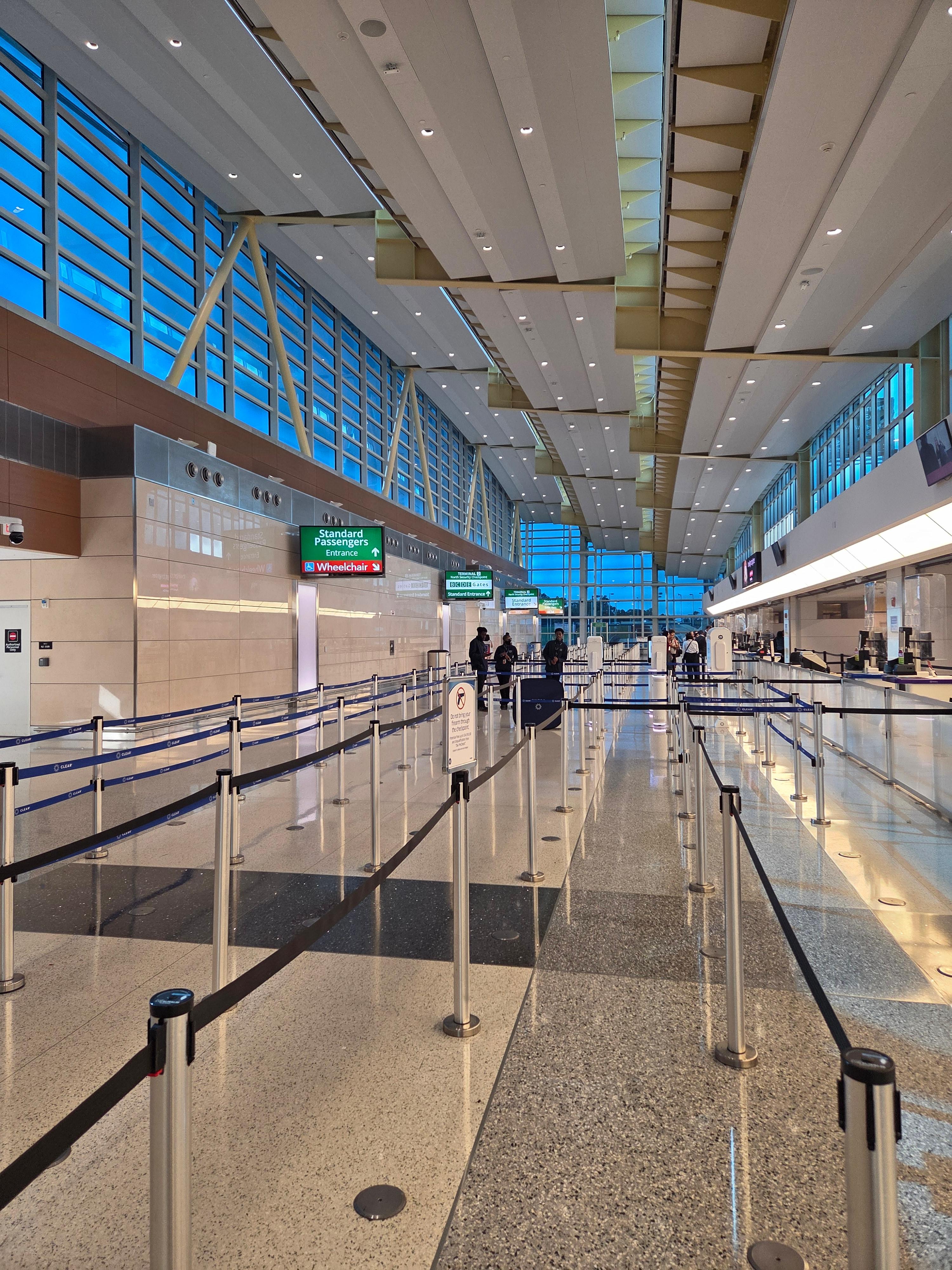 DCA 공항 내부 위탁 수하물의 경우 아메리칸 항공 국내선 일등석은 70lb(32kg)수하물 2개까지 무료로 위탁할 수 있습니다. 업그레이드를 받은 경우는 체크인 시점 기준으로 이미 업그레이드가 확정된 경우는 업그레이드된 캐빈 기준으로 위탁 수하물을 부칠 수 있습니다. 저의 경우는 체크인 전에 업그레이드가 확정되었기 때문에 국내선 일등석 무료 수하물 기준이 적용되었습니다. 만약 체크인 후 또는 위탁 수하물을 부친 후 업그레이드가 제공되는 경우는 업그레이된 클래스가 아닌 본인이 최초 예약한 클래스 기준으로 위탁 수하물을 부칠 수 있습니다. 따라서 일등석 업그레이드를 보안구역에 들어와서 보딩을 기다리던 중에 받았다고 한다면 일등석 기준의 무료 수하물 혜택을 받을 수 없습니다.