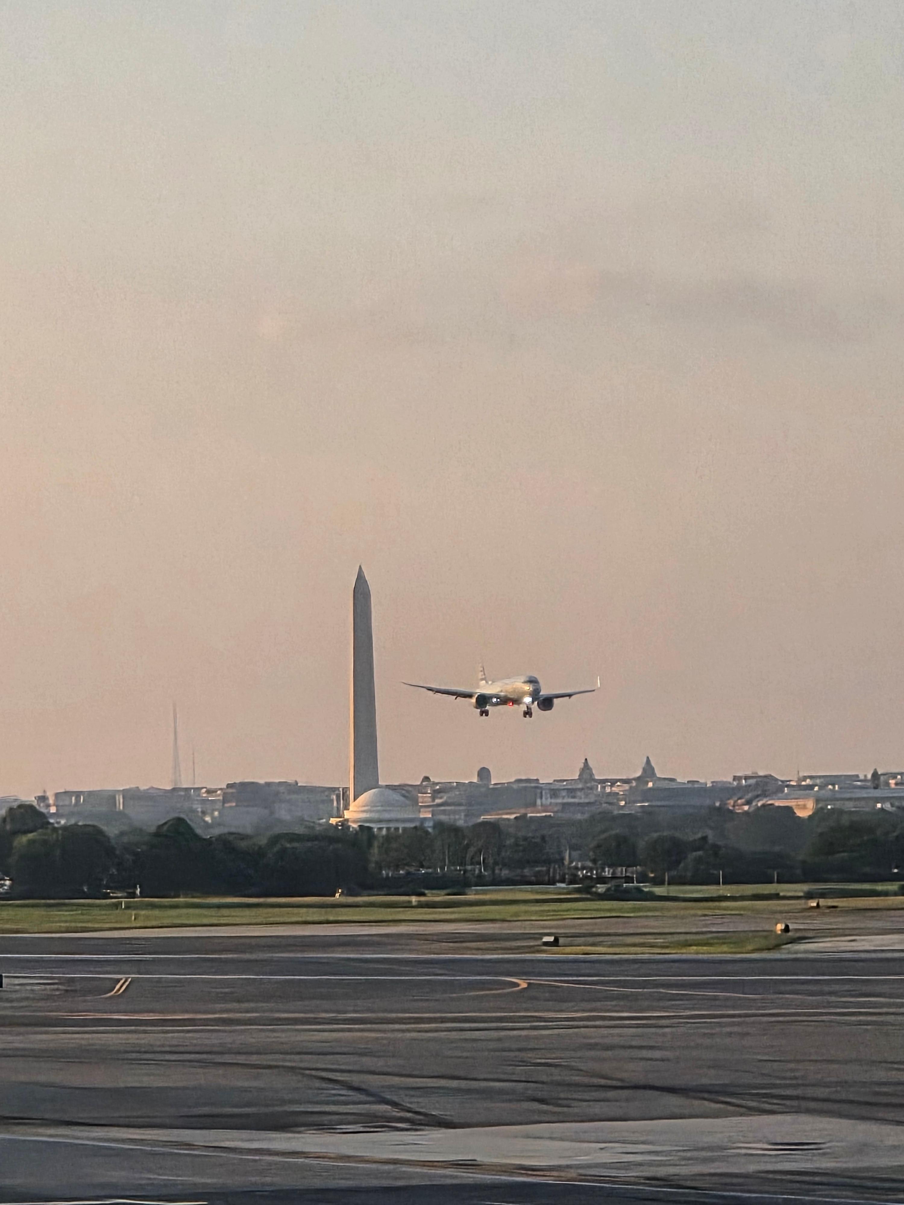 오늘 타고갈 항공기(좌)와 DCA 공항 보딩 게이트(중, 우) 탑승 후에도 웰컴 드링크와 같은 다른 서비스를 제공되지 않았습니다. 이 부분에 있어서 온라인 커뮤니티에서도 말이 다양한데요, 제 경험과 다른 분들의 경험을 비교해서 말해보자면 미국의 대형 항공사인 델타 항공, 유나이티드 항공, 아메리칸 항공, 알래스카 항공 중 아메리칸 항공만 물을 포함해 출발 전 음료 서비스가 꾸준히 제공되지 않는다는 보고가 있었습니다. 다만, 아메리칸 항공의 모든 노선에서 출발 전 음료 서비스가 제공되지 않은 건 아니라는 점에서 그날 여러 상황에 따라 달라질 수 있다는 점과, 다른 항공사들도 출발 전 음료 서비스가 항상 제공되는 건 아니지만, 제공되지 않는 빈도가 아메리칸 항공보다는 적다는 점 정도를 참고하시면 좋을 것 같습니다. 따라서 미국 국내선 일등석에 탑승하실 때 대한항공의 단거리 비즈니스 석 정도의 서비스는 기대하지 않는 것이 좋습니다.