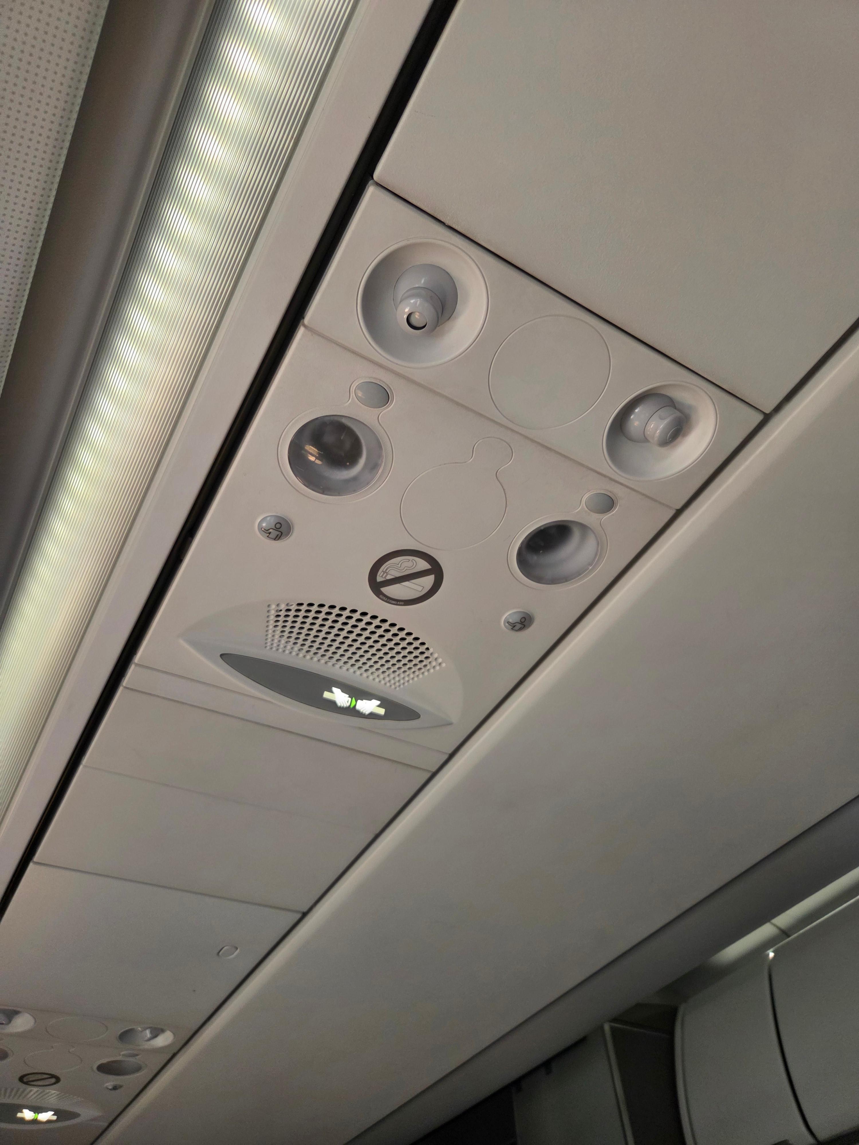 앞 좌석 콘솔 부분에는 무언가를 올려놓을 수 있는 작은 테이블이 있고 구명 조끼는 좌석 콘솔 밑 빨간 리본으로 표시된 공간에 수납되어 있습니다. 좌석 위로는 독서등과 에어벤트가 있었으며 일등석 캐빈의 오버헤드빈은 일등석 승객 전용으로 지정되어 있는 데다가 탑승 순서가 제일 앞이기 때문에 오버헤드빈 공간이 부족할 염려는 없을 것 같습니다.11. 기내 서비스