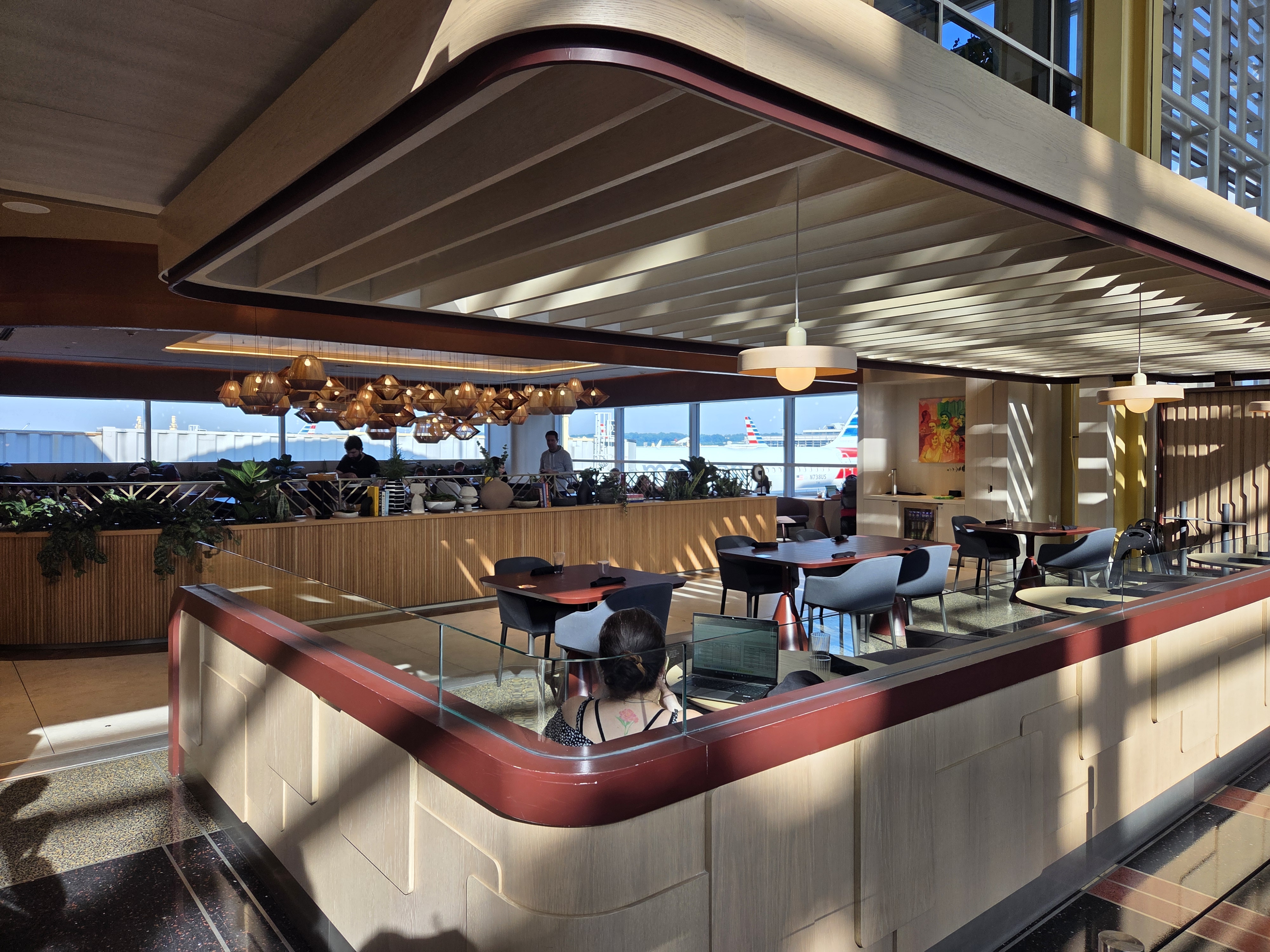 캐피탈 원 랜딩 워싱턴 D.C. 외관 아메리칸 항공은 국내선 일등석에 따로 라운지 서비스를 제공하지는 않습니다만, 제가 소지한 신용카드 혜택으로 출발 전 라운지를 이용할 수 있었습니다. 제가 이용했던 라운지는 로널드 레이건 워싱턴 네셔널 공항 캐피탈 원 랜딩 라운지로 캐피탈 원에서 발행하는 특정 신용카드를 소지한 경우에 입장이 가능합니다. DCA 캐피탈 원 랜딩은 일반적인 라운지와는 약간 다른 식당 컨셉의 라운지입니다. 라운지에 입장을 하면 테이블로 안내를 받고, 테이블에서 QR코드를 이용해 음식이나 커피, 주류 등을 주문할 수 있는 시스템입니다. 커피나 주류, 샐러드 디저트 등은 마련된 공간에서 직원에게 부탁해 직접 받아올 수 있지만 다른 음식들은 반드시 QR코드를 이용해 주문을 해야 합니다.