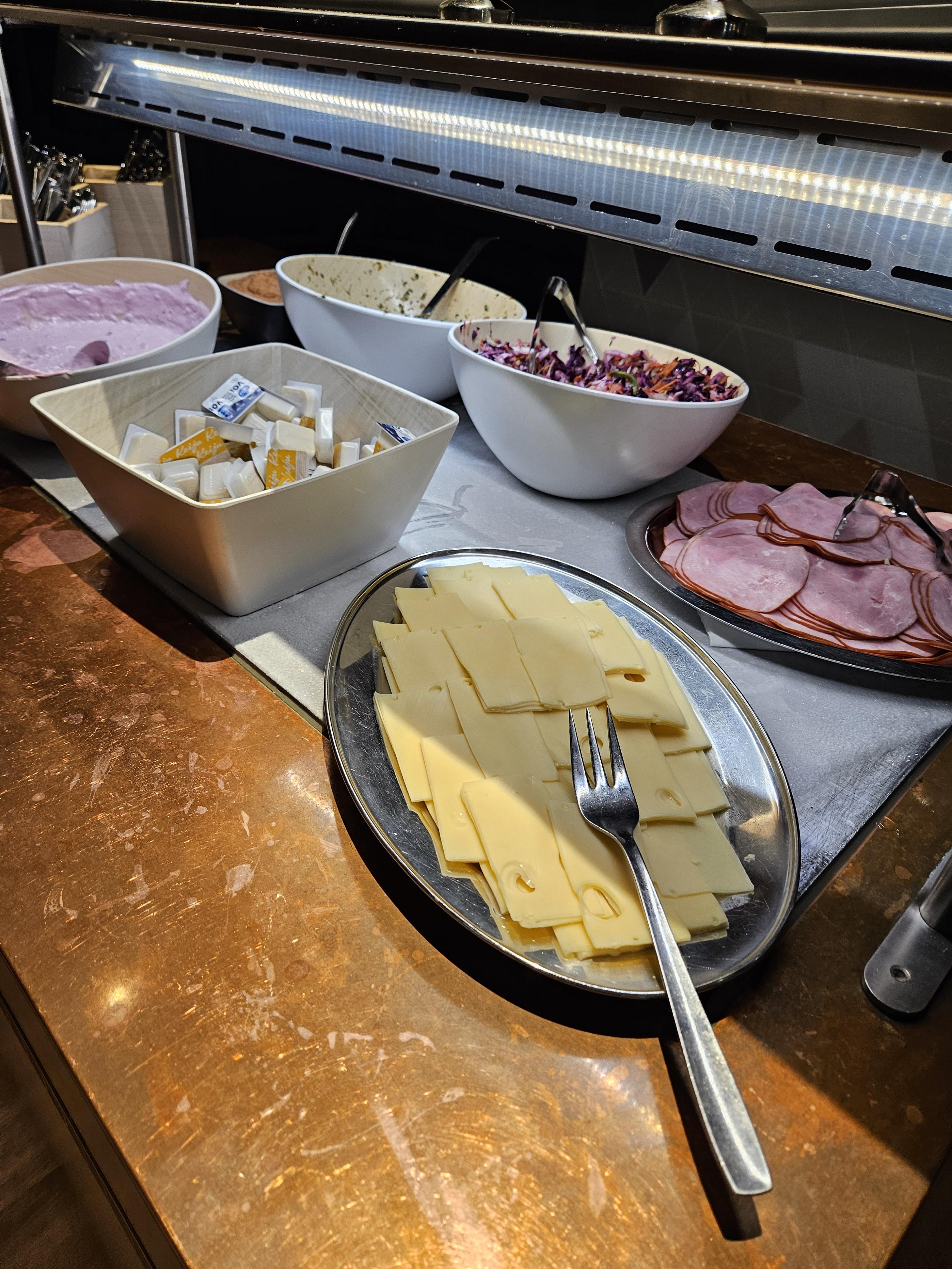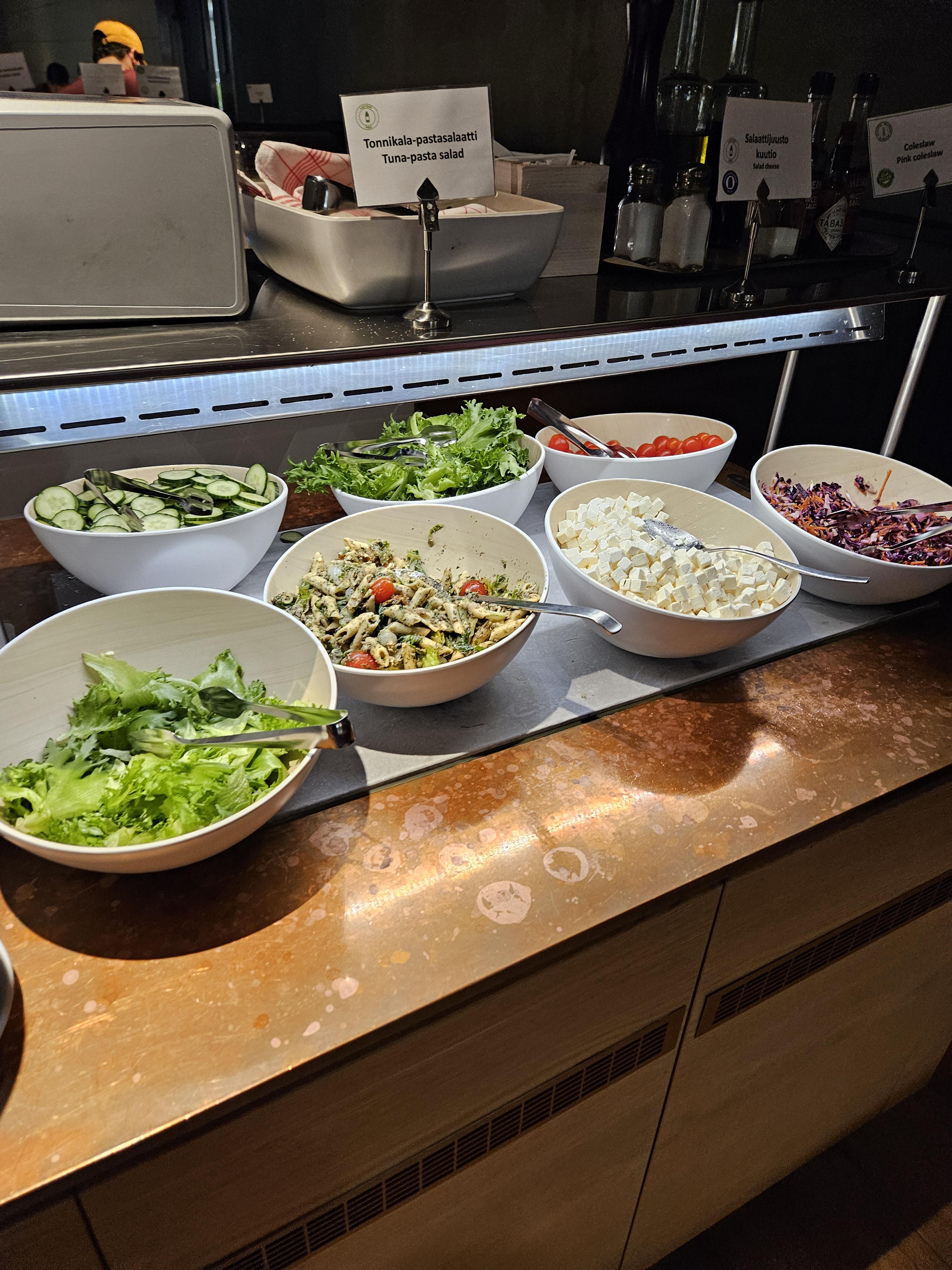 헬싱키 공항 Aspire 라운지 음식 헬싱키의 Aspire 라운지에는 샤워시설은 없었지만 기본적인 핫푸드와 콜드푸드, 주류와 커피, 음료가 잘 마련되어 있었습니다. 음식으로는 샐러드와 파스타 샐러드, 햄과 치즈, 빵, 요거트, 수프 등이 마련되어 있었고, 주류는 눈에 띄는 것 없이 기본적인 화이트/레드 와인과 보드카, 진, 위스키 등이 준비되어 있었습니다. 시간적 여유가 있고, 대기 인원이 적다면 한 30분에서 한시간 정도 시간을 보내기에 나쁘지는 않으나 굳이 공항에 일찍 도착해서 갈 정도는 아닌 라운지라고 보시면 됩니다.