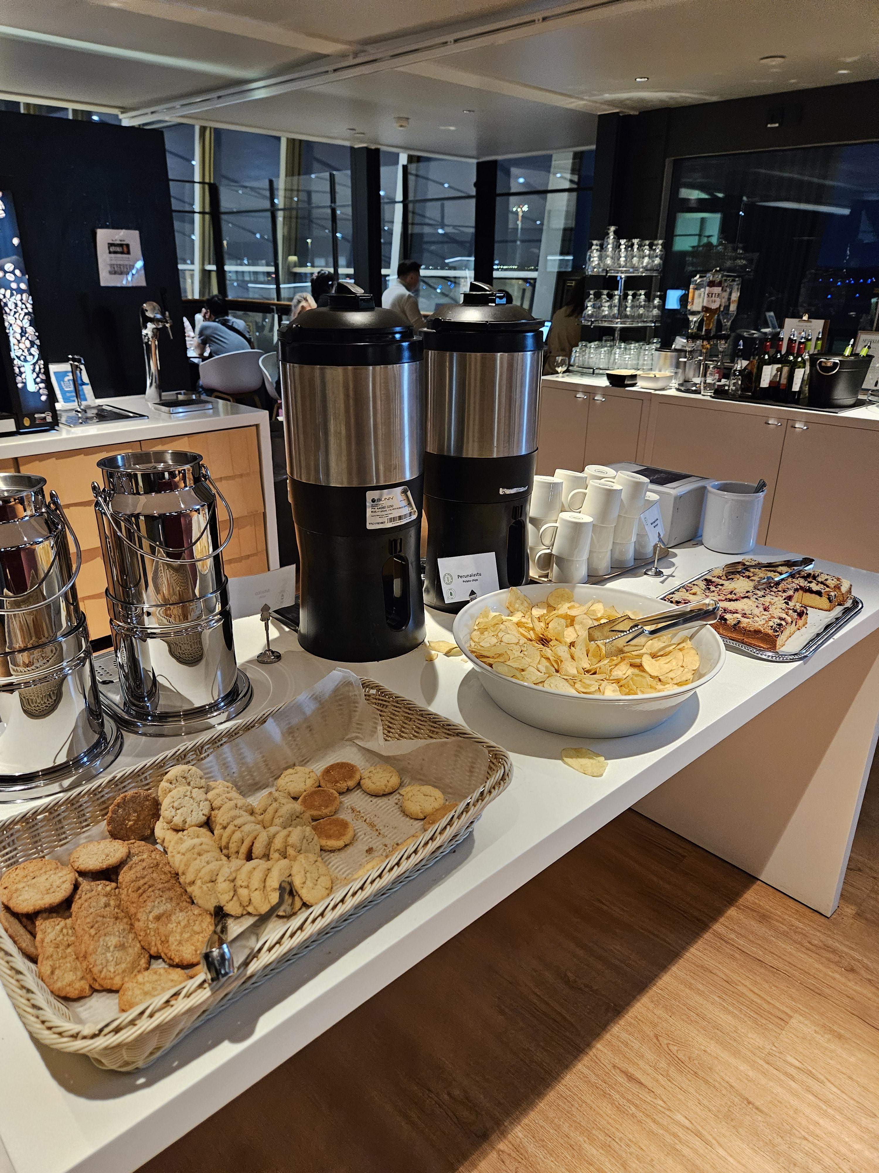 헬싱키 공항 Aspire 라운지 주류 및 음료 2 27번 게이트 근처의 Aspire 라운지는 지난번 이용했던 헬싱키 핀에어 비즈니스 라운지와 비교해 공간이 훨씬 작았습니다. 처음에는 대기줄도 있었고, 직원은 다른 Aspire 라운지를 이용하는 권하기도 했습니다. 상황을 보니 대부분의 경우 13번 게이트 근처의 Aspre 라운지보다는 27번 게이트 근처의 Aspire 라운지가 더 붐비는 것 같습니다. 또 라운지 내부에 이용객이 많으면 이용객이 나갈때까지 입장을 제한하기도 해서 상황에 따라 기다리는 시간이 길어질 수도 있습니다.