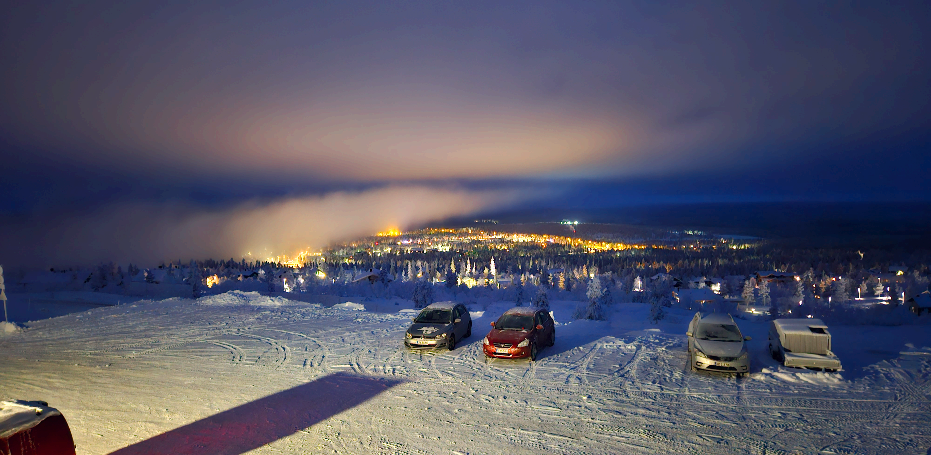 사리셀카는 인구가 350명 정도 되는, 도시라고도 할 수 없는 작은 마을입니다. 하지만 겨울 스키와 오로라 시즌이 되면 곳곳에서 몰려드는 관광객들로 북적거리는 마을이기도 합니다. 11월 말, 이제 본격적인 성수기로 접어드는 시기이지만 이미 사리셀카에는 사람들이 몰리는 들뜬 분위기가 느껴졌습니다. 겨울 모습만 보면 인구 350명 마을이라고는 생각하기 힘든 모습과 분위기 입니다. 제가 머문 스타 아틱 호텔 사리셀카는 카우니스파(Kaunispää) 산 정상 부근에 위치한 호텔입니다. 사리셀카의 다른 호텔들이 눈과 침엽수에 둘러싸여 포근한 느낌을 준다면, 스타 아틱 호텔 사리셀카는 우뚝 솟은 시원함을 주는 호텔입니다. 객실에 들어서자 작은 사리셀카 마을이 한눈에 보입니다. 해는 져서 어두움이 밀려오고 있지만, 아직 완전한 밤은 되지 않아 어스름이 남아 있는 그 시간. 다른 장소에서는 끽해야 반 시간 정도 지속되는 이 순간이 사리셀카에서는 1시간도 넘게 자리 잡는 마법 같은 순간입니다.