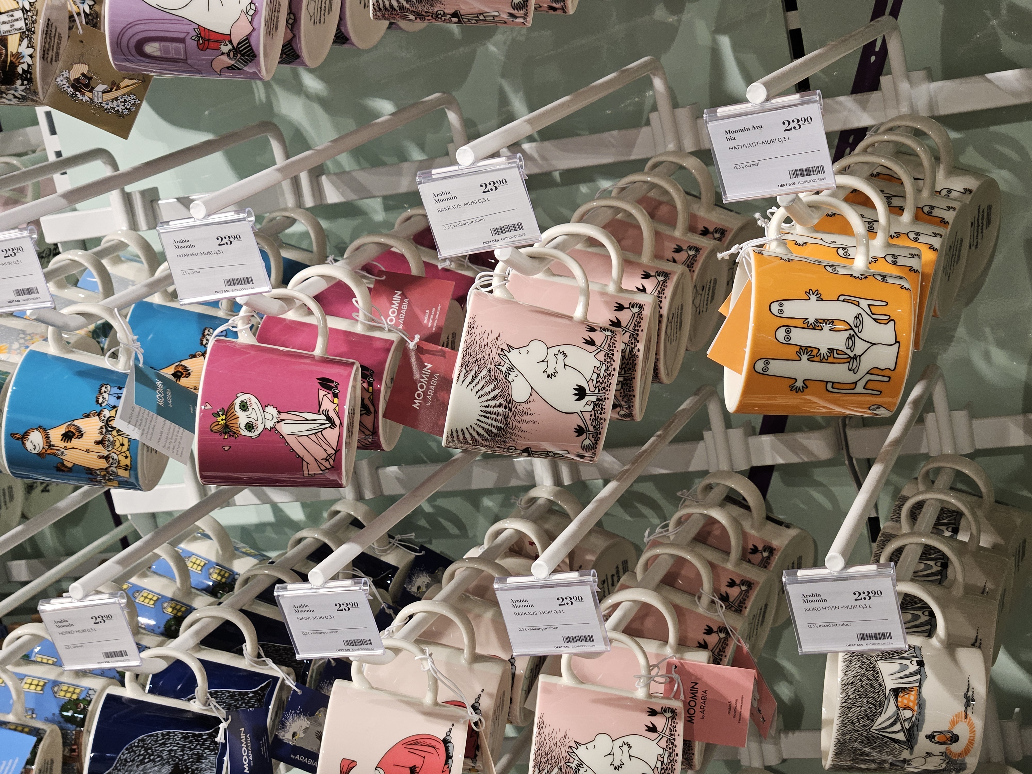 핀란드 하면 무민 또한 자연스럽게 떠오릅니다. 무민은 핀란드에서 가장 사랑받는 캐릭터 중 하나입니다. 이 무민 캐릭터는 실제로는 굉장히 오래되었습니다. 1940년대에 처음으로 무민 캐릭터가 등장했으니 벌써 80년이 넘은 캐릭터입니다. 시간을 거쳐오며 약간의 수정은 있었지만 여전히 비슷한 모습으로 오랜 시간 동안 사랑받고 있다는 점에서 북유럽 디자인과 결이 비슷하다고 느껴지기도 합니다. 흰색에 검은색 선으로 심플하게 그려진 무민은 그 자체만으로도 북유럽 디자인의 느낌이 나지만 핀란드 사람들이 무민 캐릭터를 여러 제품에 어떻게 적용시키는지를 보면 핀란드에서 북유럽 디자인이 어떤 느낌인지 더 와닿는 것 같습니다.