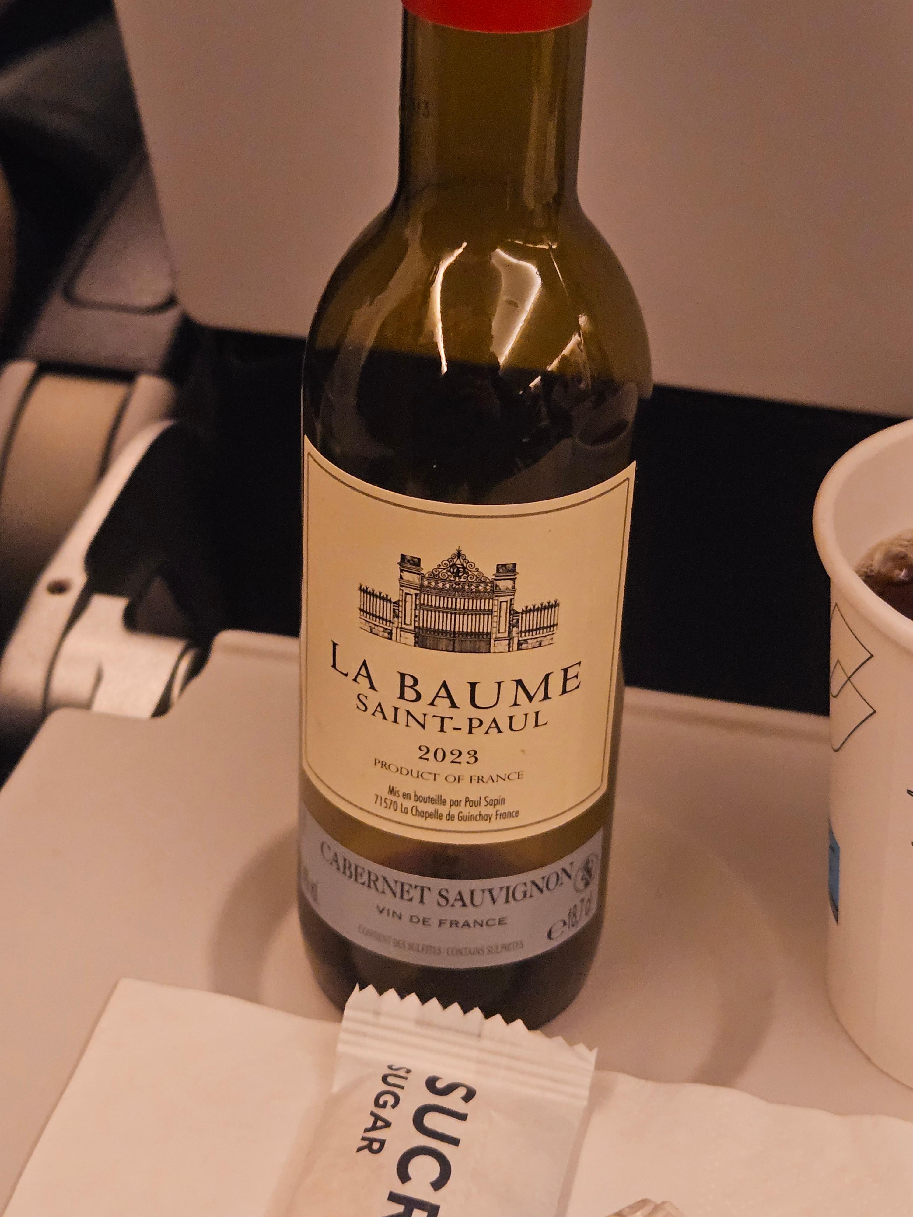 기내식으로는 간단한 잠봉뵈르 샌드위치와 마들렌이 제공되었습니다. 사실 이것부터가 굉장히 프랑스스럽긴 합니다. 프랑스 국민 샌드위치인 잠봉뵈르, 그리고 프랑스의 대표적인 디저트인 마들렌이라니. 맛과 퀄리티를 떠나서 메뉴 선정부터 굉장히 프렌치스러운 느낌입니다. 당연히 음료 서비스 때는 레드 와인을 골랐습니다. 프랑스 하면 바로 와인이니까요. 승무원은 제게 종이컵과 더불어 187ml짜리 작은 와인병을 통째로 건넸습니다. 아마 술을 좋아하시고 와인을 좋아하시는 분이라면 제가 어떤 감정을 느꼈는지 짐작하실 겁니다. 솔직히 얼마 안되는 작은 병이지만 병을 통채로 준다는 건 아주 감동이니까요. 저는 와알못이긴 하지만, 제가 이 날, 에어프랑스 항공기에서 마신 와인은 그동안 비행을 하면서 마셨던 와인 중에 가장 맛있는 와인이었습니다. 어쩌면, 이 프렌치스러운 분위기와 메뉴 때문에 그랬을 수도 있지만 그날 느꼈던 느낌은 ‘에어프랑스는 이코노미 클래스에 들어가는 와인 하나도 허투루 고르지 않구나’였습니다. 어쩌면 이게 프랑스 사람들의 생활양식일 수도 있고요.