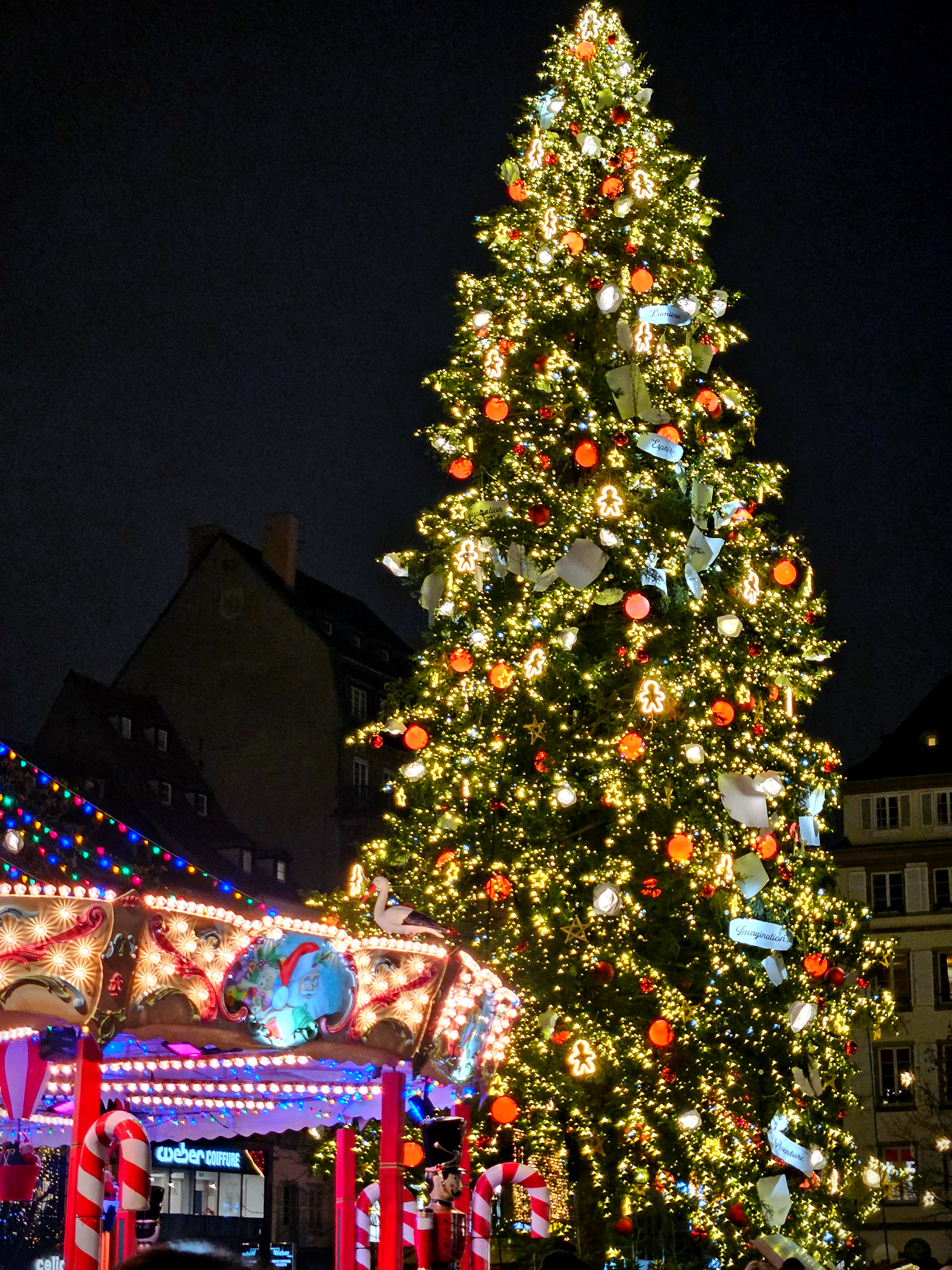 스트라스부르의 올드타운 곳곳에서는 크고 작은 상점들이 들어서고, 수많은 크리스마스 장식들이 거리를 밝히고 있습니다. 이 크리스마스 장식들은 여전히 중세 시대의 모습을 간직하고 있는 스트라스부르 올드타운의 여러 건물들에 더해져 더 낭만적인 분위기를 만듭니다. 스트라스부르의 클레베르 광장에는 수많은 상점들과 더불어 스트라스부르 크리스마스 마켓에서 가장 유명한 높이가 약 30미터가 넘는 전나무로 만들어진 거대한 크리스마스 트리가 세워집니다. 날이 밝을 때도 이 크리스마스트리는 엄청난 존재감을 보여주는데요, 날이 어두워지면 크리스마스 트리에 달린 형형색색의 크리스마스 장식들이 클레베르 광장 어디에서도 볼 수 있을 만큼 밝게 빛납니다. 크리스마스 트리에 더해 그 앞에 있는 회전목마까지, 스트라스부르의 크리스마스트리는 우리가 크리스마스 트리 하면 생각나는 그 모든 느낌들을 아낌없이 보여줍니다.