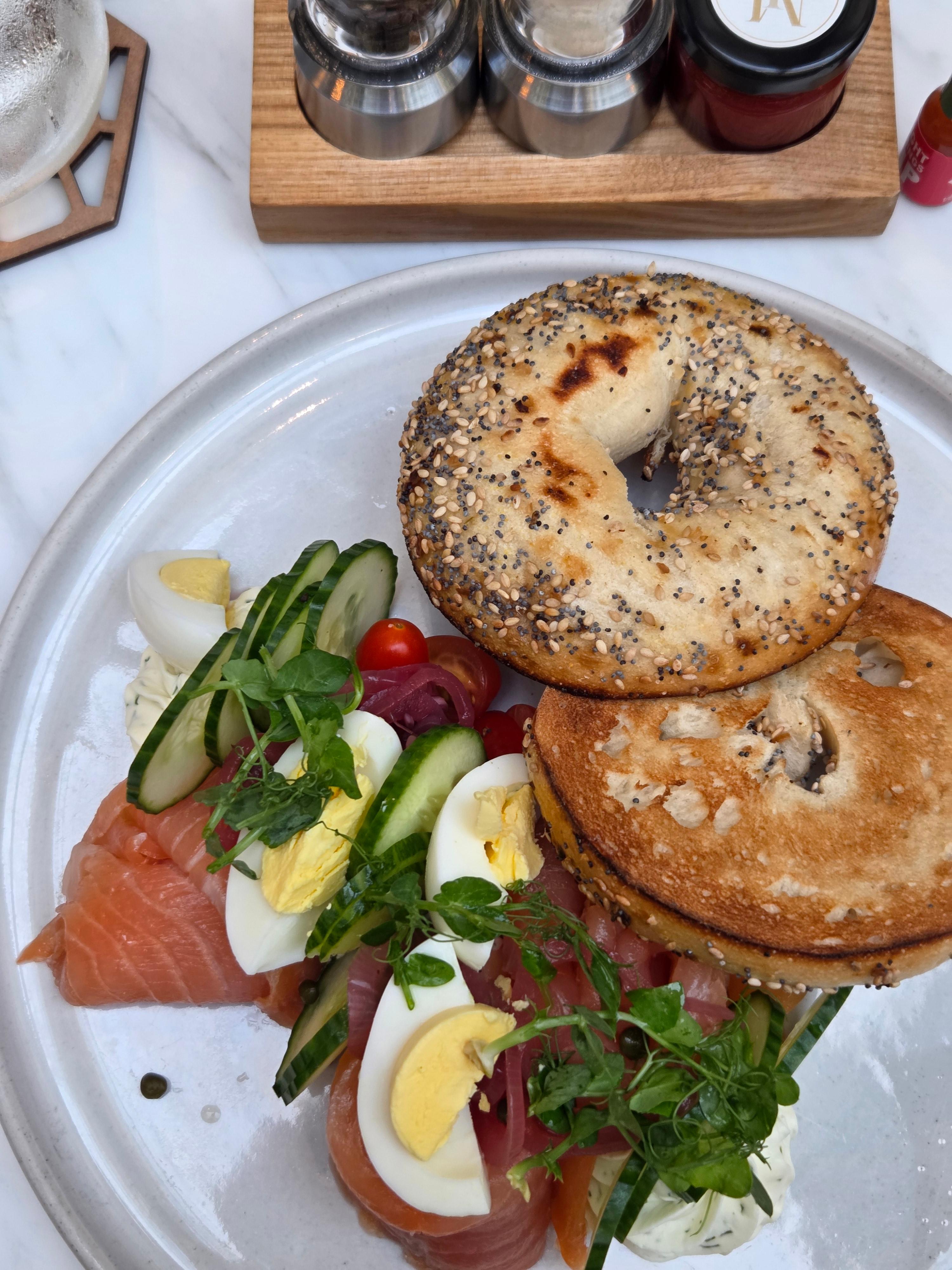 월도프 아스토리아 워싱턴 DC 조식당 피콕 앨리 Chesapeake Smokehouse Salmon과 Crab Cake Benedict 먼저 훈제 연어는 비린맛 없이 은은한 훈제 향이 났고 함께 나온 허브 크림치즈의 은은한 향이 연어와 곁들여 먹기도 좋았습니다. 곁들이는 에브리띵 베이글도 토스트 정도가 알맞고 쫀득해서 맛있었습니다. 크랩 케이크 베네딕트도 게살이 넉넉히 들어간 데다 홀렌다이즈 소스가 참 맛있어서 괜찮은 메뉴였습니다. 가격은 각각 32달러와 41달러로 저렴한 편은 아니었지만, 워싱턴 D.C.라는 지역적 특수성과 월도프 아스토리아 호텔이라는 브랜드를 생각해 보면 엄청 비싸다는 생각까지는 들지 않았습니다. 최종적으로는 조식 크레딧 50달러를 할인받아 약 50달러 넘는 금액을 체크아웃 시 결제했습니다.