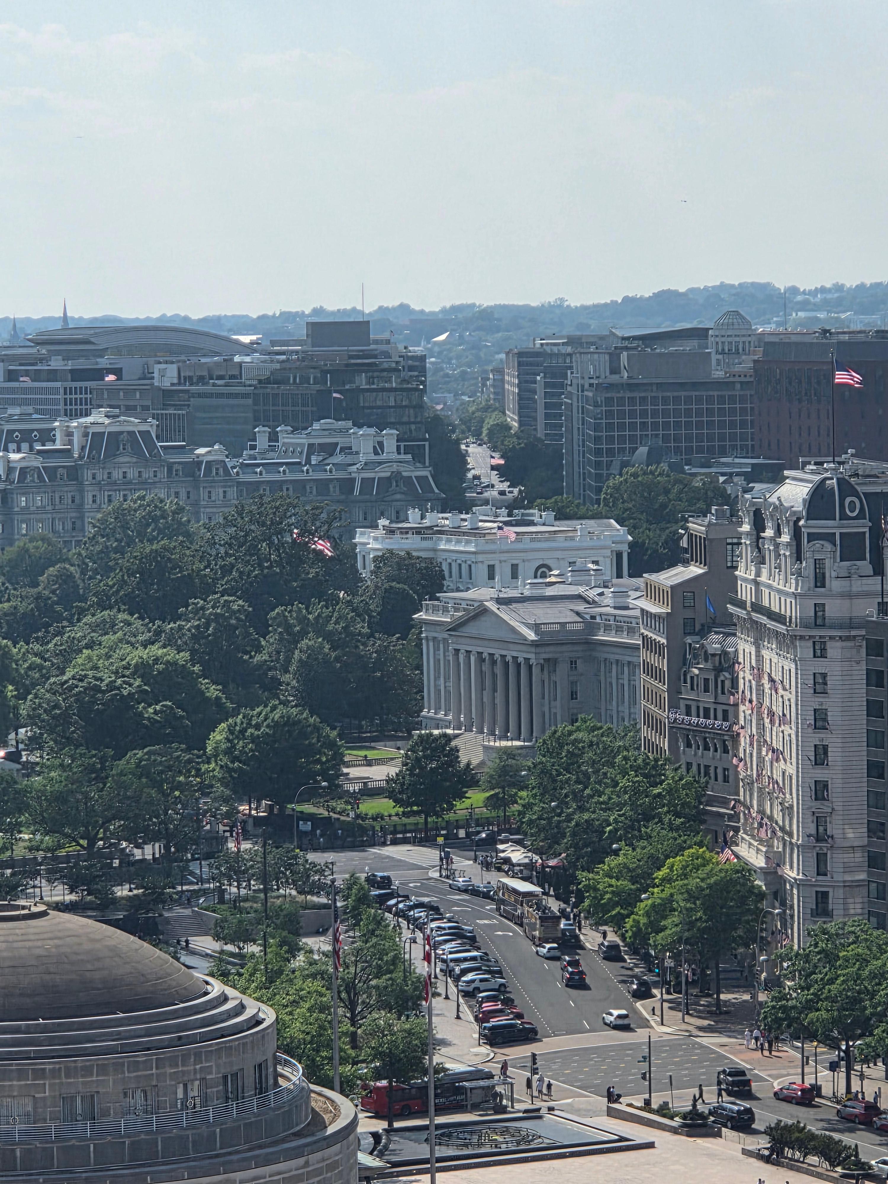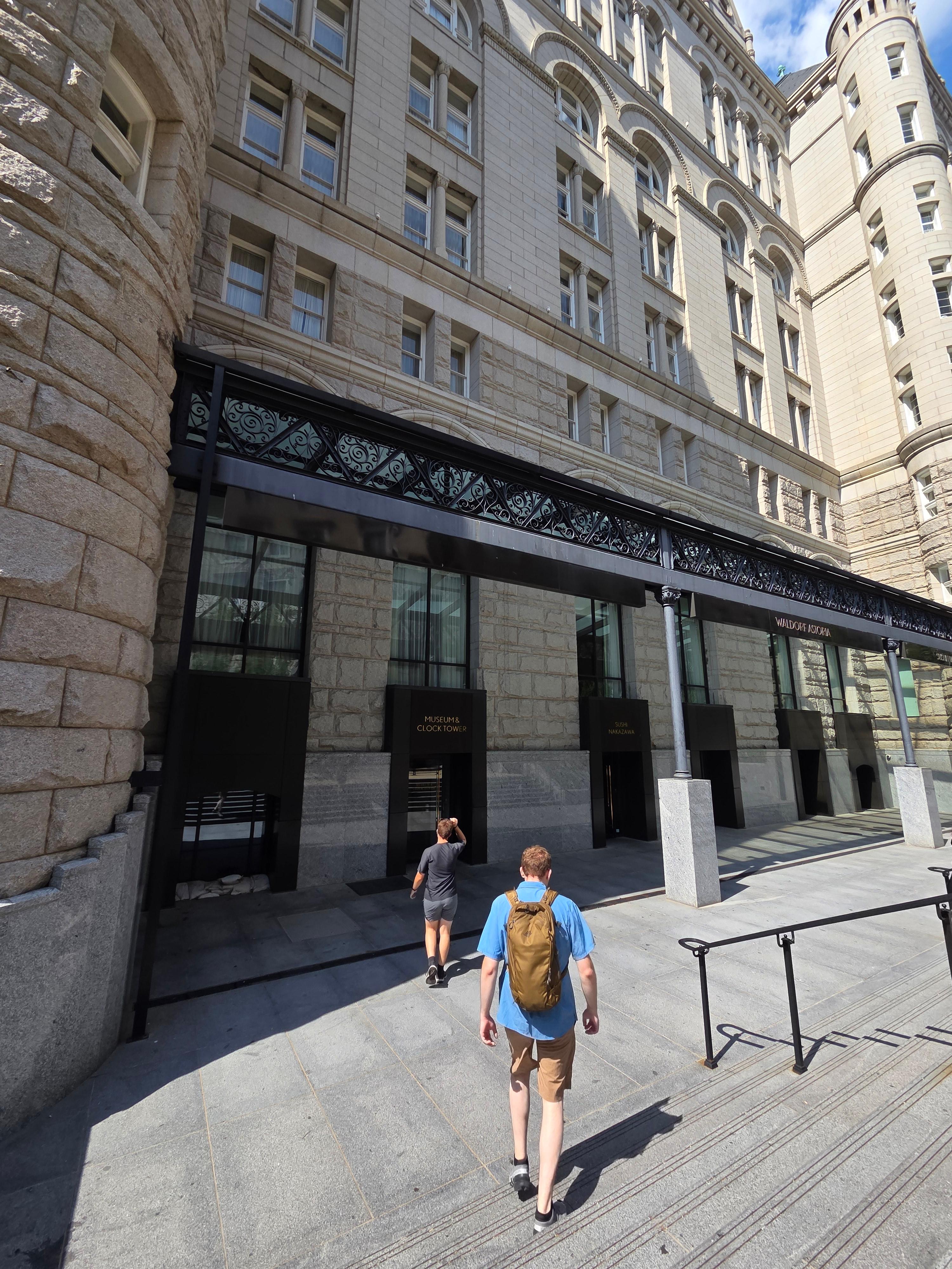 월도프 아스토리아 워싱턴 DC 시계탑에서 바라본 풍경 호텔 내부와 직접적으로 연결되어 있지는 않지만, 같은 건물에 있는 시계탑을 둘러볼 수도 있습니다. 시계탑에 가기 위해서는 호텔에서 나와 시계 반대방향으로 3/4바퀴를 돌면 Museum & Clock Tower라고 쓰여 있는 입구가 나옵니다. Old Post Office Clock Tower라고 불리는 시계탑은 내셔널 파크 서비스에서 관리하지만 따로 입장료는 없습니다. 건물 고도 제한으로 고층 건물이 많이 없는 워싱턴 DC를 높은 곳에서 조망할 수 있는 얼마 되지 않는 장소이기에 한 번쯤은 방문할 법합니다. 참고로 마지막 입장이 4시 30분이기에 이점 참고해서 계획 짜시면 되실 것 같습니다.