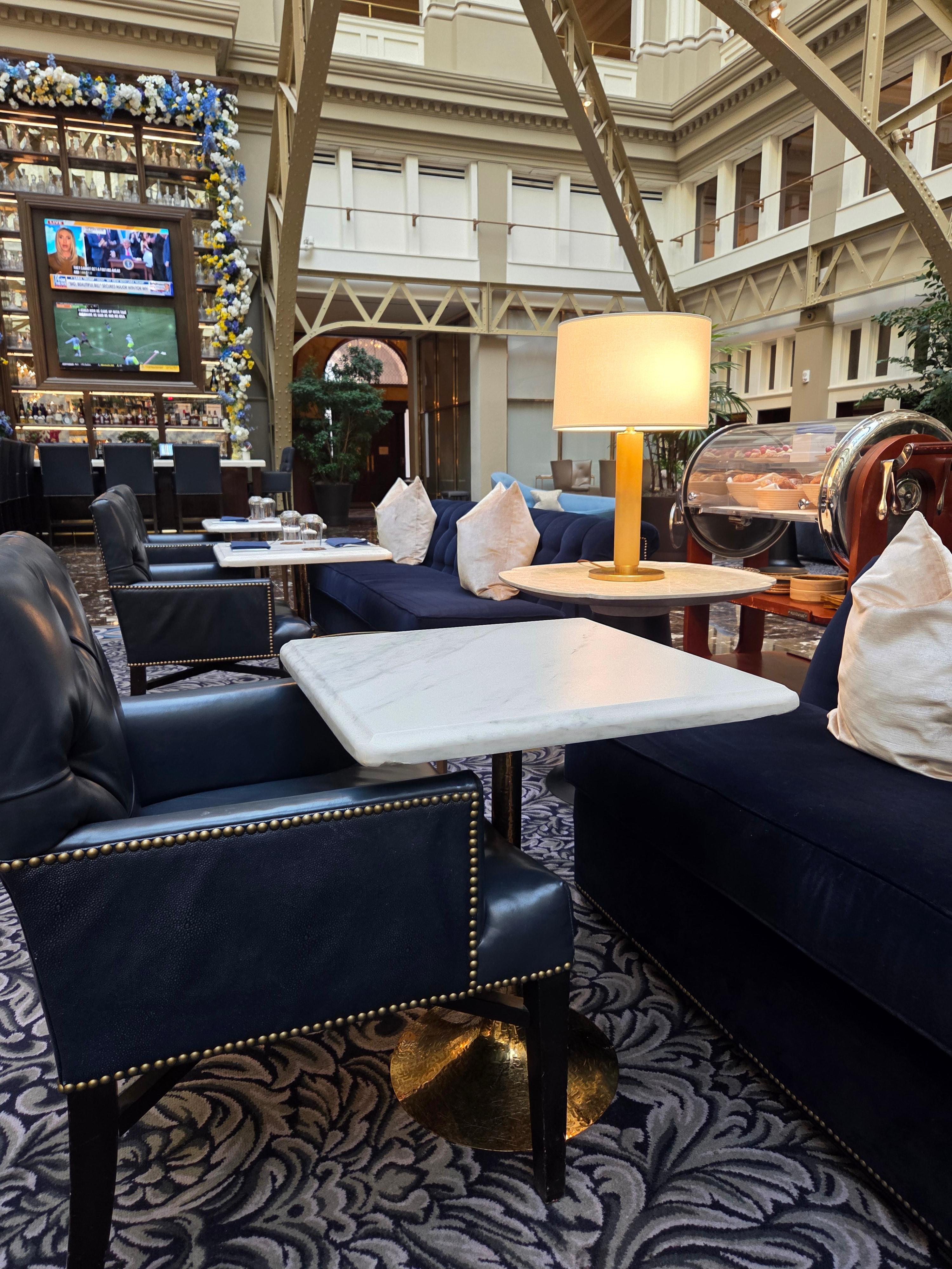월도프 아스토리아 워싱턴 DC 에이트리움 위에서도 중앙 에이트리움에 대해서 여러 번 언급했는데요, 개인적으로는 호텔 로비나 식당 인테리어로는 지금까지 다녀본 호텔 중 가장 멋진 곳 중 하나이지 않나 하는 생각이 듭니다. 일단 에이트리움 위에는 유리로 된 천장 외에 아무것도 없이 뻥 뚫려 있어 아주 시원한 느낌을 주면서도 자연광이 잘 들어와서 실외에 나와있는 느낌을 줍니다. 물론, 실내이기 때문에 한여름에도 실외에 있는 것 같은 느낌을 받으면서도 시원한 에어컨 바람을 쐴 수 있다는 게 최고의 장점입니다. 또한 어디에 투숙하더라도 방에서 나오면 바로 에이트리움이 보이기에 위에서 에이트리움을 내려다보는 뷰도 좋았고요. 특히 피콕 앨리에서 에프터눈 티를 판매하고 있는데, 개인적으로 다시 이 호텔에 방문하게 되면 에이트리움의 피콕 앨리에서 꼭 에프터눈 티를 마셔야겠다는 생각이 들 정도로 분위기 좋은 공간이었습니다.