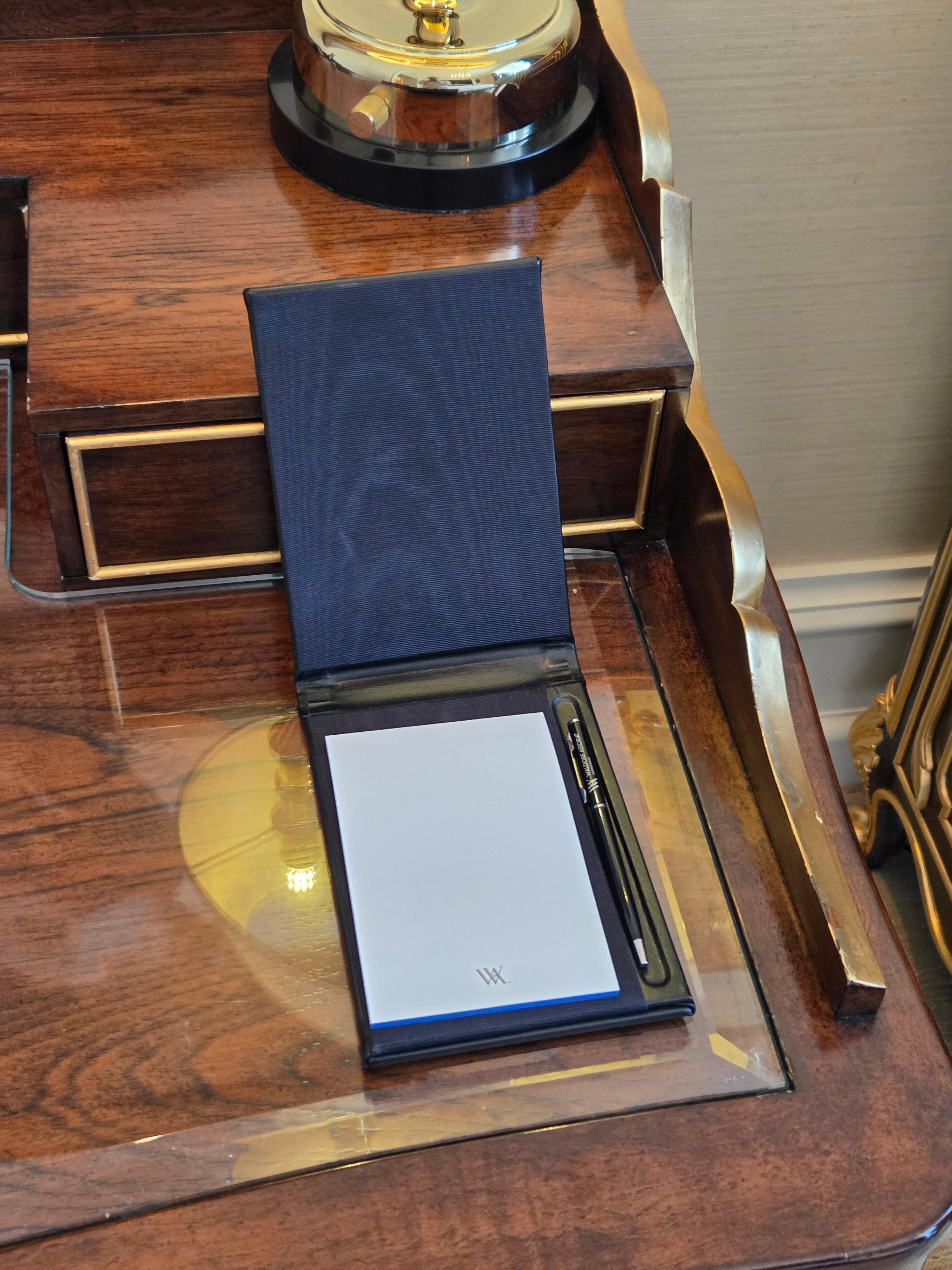 월도프 아스토리아 워싱턴 DC 디럭스 킹 어매니티 월도프 아스토리아 워싱턴 D.C. 는 힐튼 브랜드의 최상위 브랜드 중 하나인만큼 다양한 어매니티가 제공됩니다. 가장 먼저 사무용품들로는 메모지와 볼펜, 데스크 위에는 USB 충전포트를 비롯해 전원포트가 준비되어 있습니다.