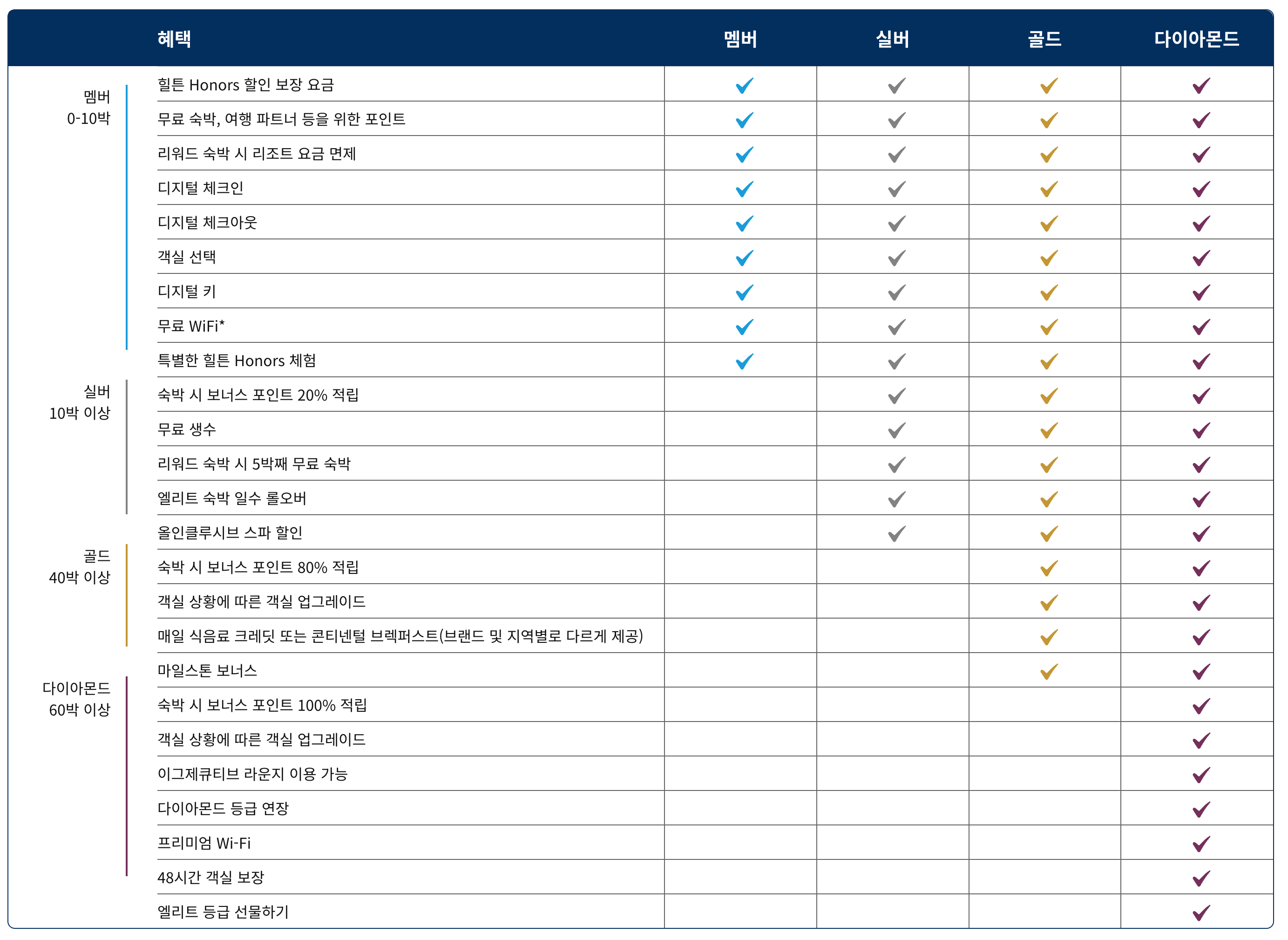 - 숙박 시점 힐튼 아너스 등급 및 혜택