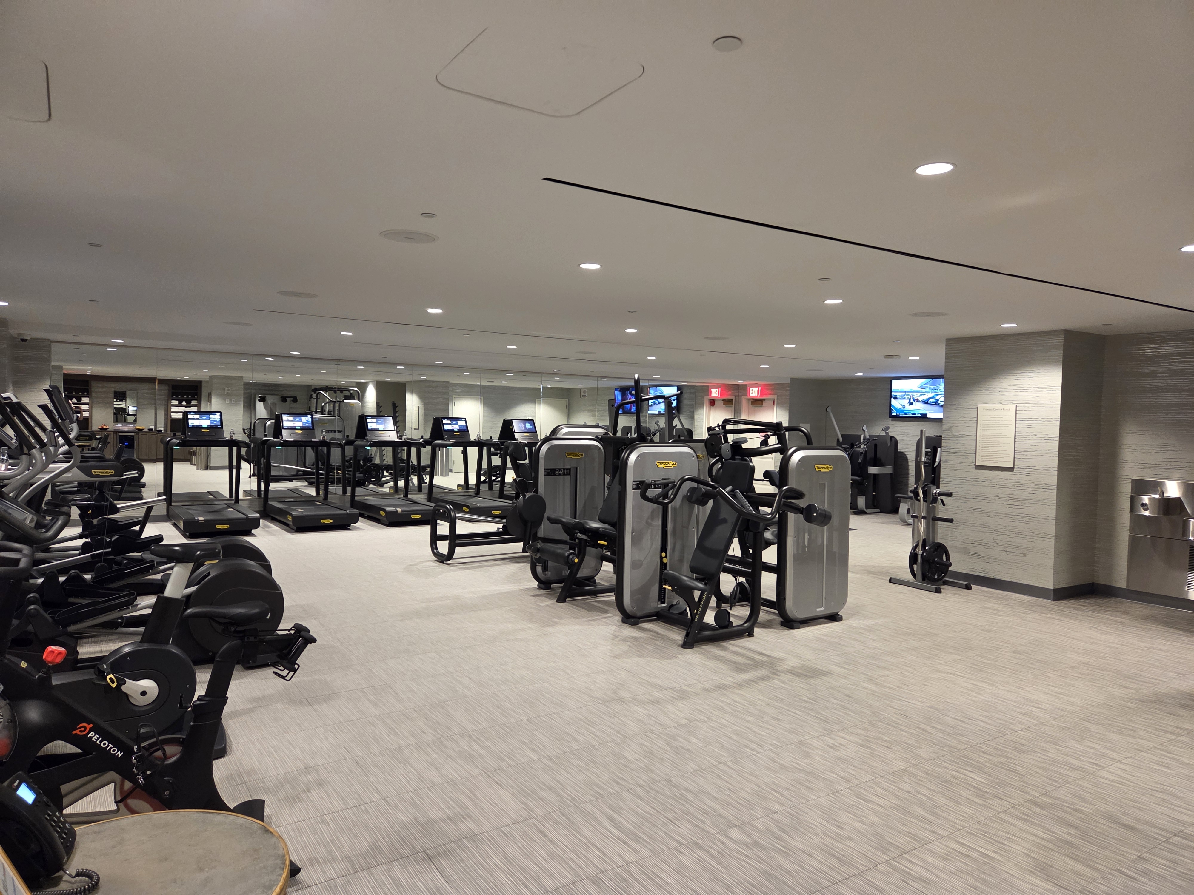 월도프 아스토리아 워싱턴 DC 피트니스 호텔 내의 시설로는 가장 먼저 피트니스 센터가 있었습니다. 운동 기구들로는 테크노짐 제품이 있었으며 기구들 뿐만 아니라 프리 웨이트를 할 수 있는 기구들도 충분히 마련되어 있었고 공간도 넉넉해 만족스러운 피트니스 센터였습니다. 피트니스 센터에는 화장실과 더불어 넉넉한 양의 물과 바나나, 사과가 있어서 물이 부족하실 때 들려서 물을 가져가기도 괜찮아 보였습니다.