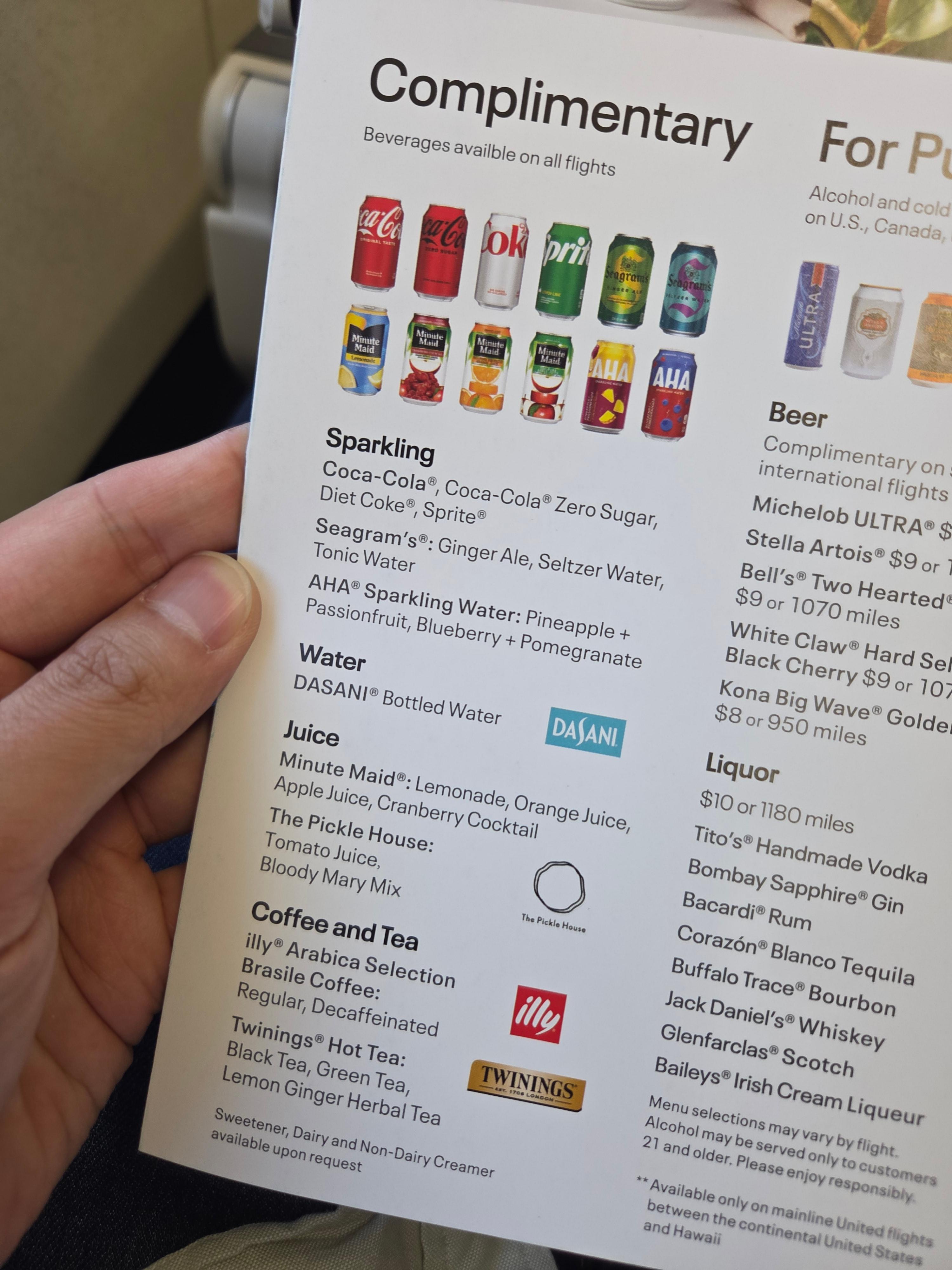 - 한줄 요약: 미국 레거시 항공사의 단거리 이코노미란 이런 것이다.