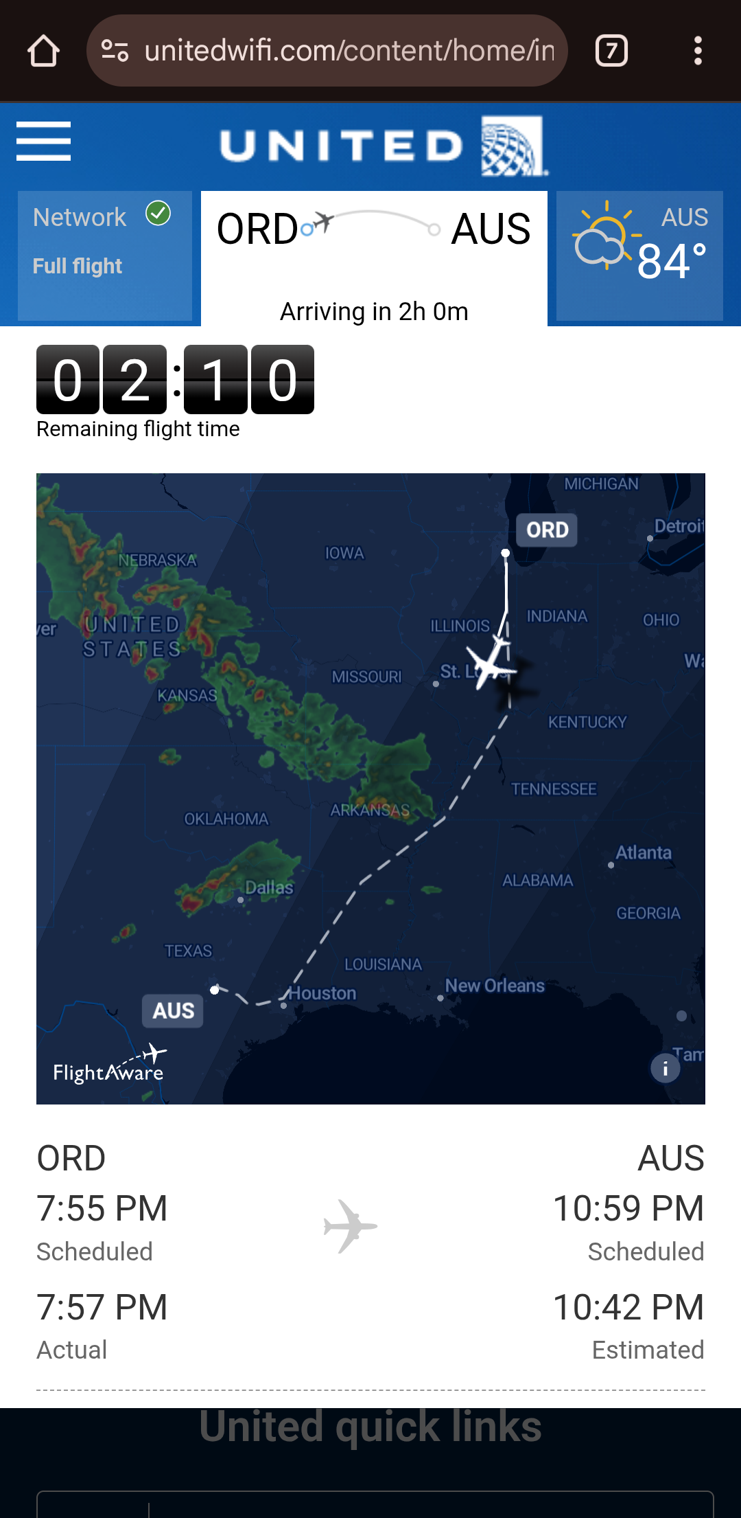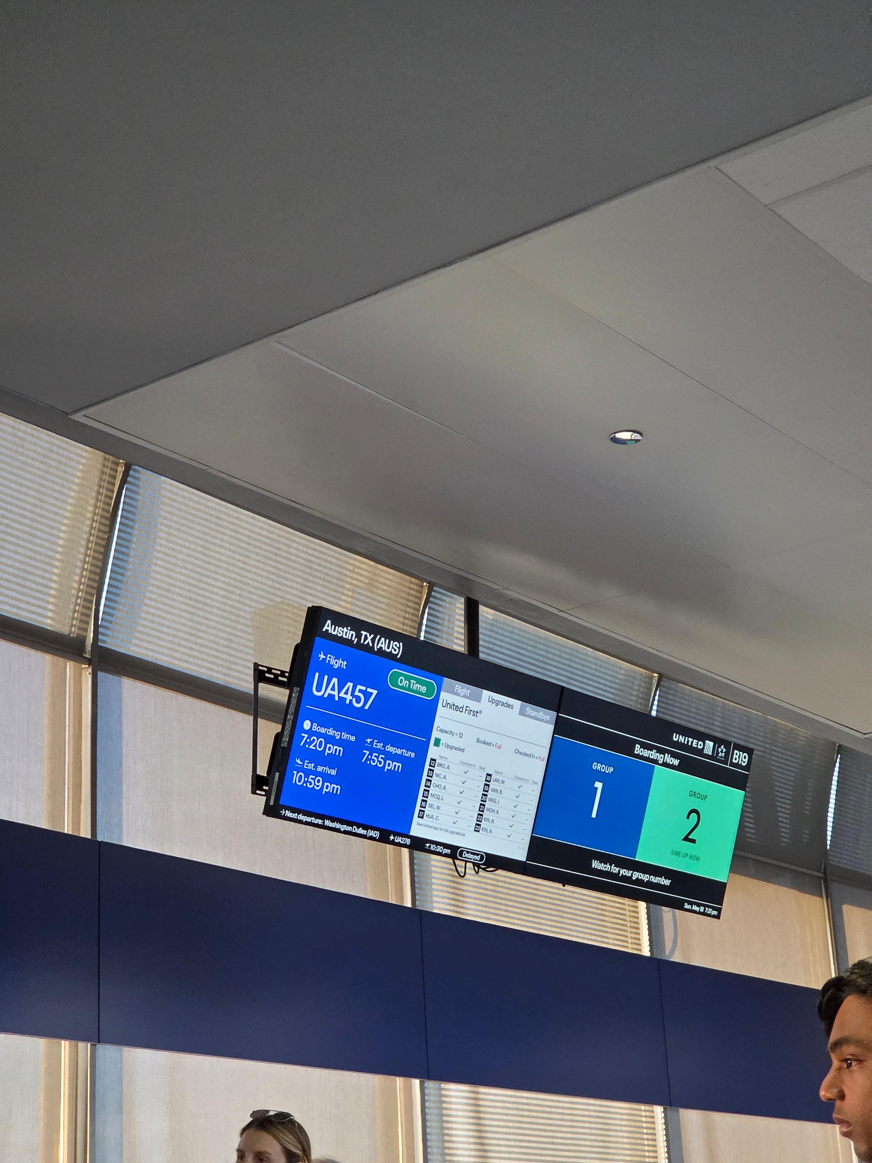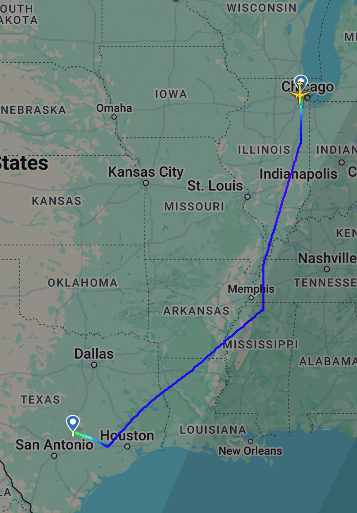 - 노선: ORD(미국 시카고 오헤어 국제공항) → AUS(미국 오스틴 버그스트롬 국제공항), UA457, 19:55 → 22:59, Duration 3h 4m