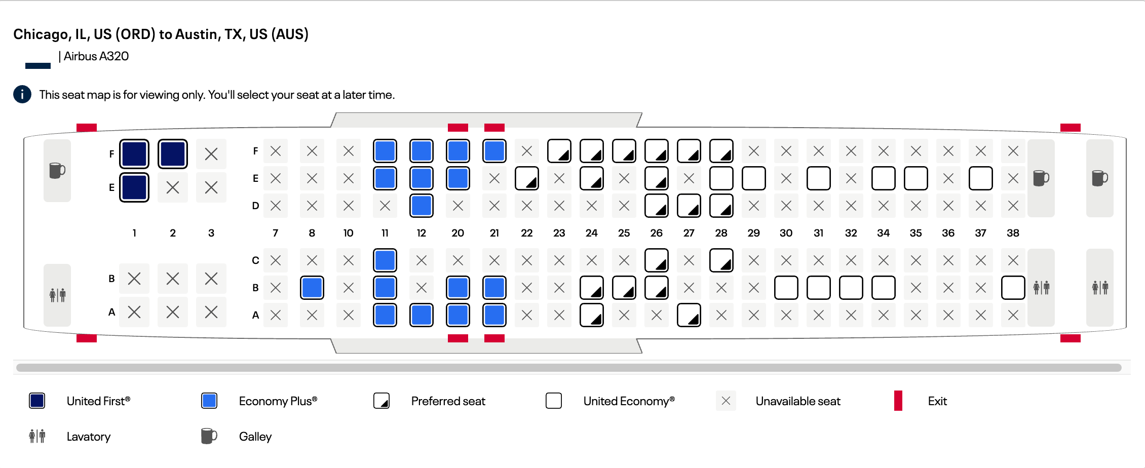 UA457편 좌석 배치도와 이코노미 운임의 사전 좌석 지정 가격 courtesy of United Airlines 제가 앉은자리는 29A로 Preferred Seat이 끝나고 United Economy Seat이 시작되는 첫 줄입니다. 베이직 이코노미가 아닌 이코노미 운임으로 구입하시는 경우 United Economy 좌석을 무료로 지정이 가능합니다. 유나이티드 항공의 A320 이코노미 좌석의 경우 좌석간격이 29.8인치로 미국의 다른 레거시 항공사인 델타 항공이나 아메리칸 항공의 협동체 이코노미 좌석보다는 약간 좁습니다. 한국의 저비용 항공사들보다 약간 더 넓은 수준이라고 생각하시면 됩니다.