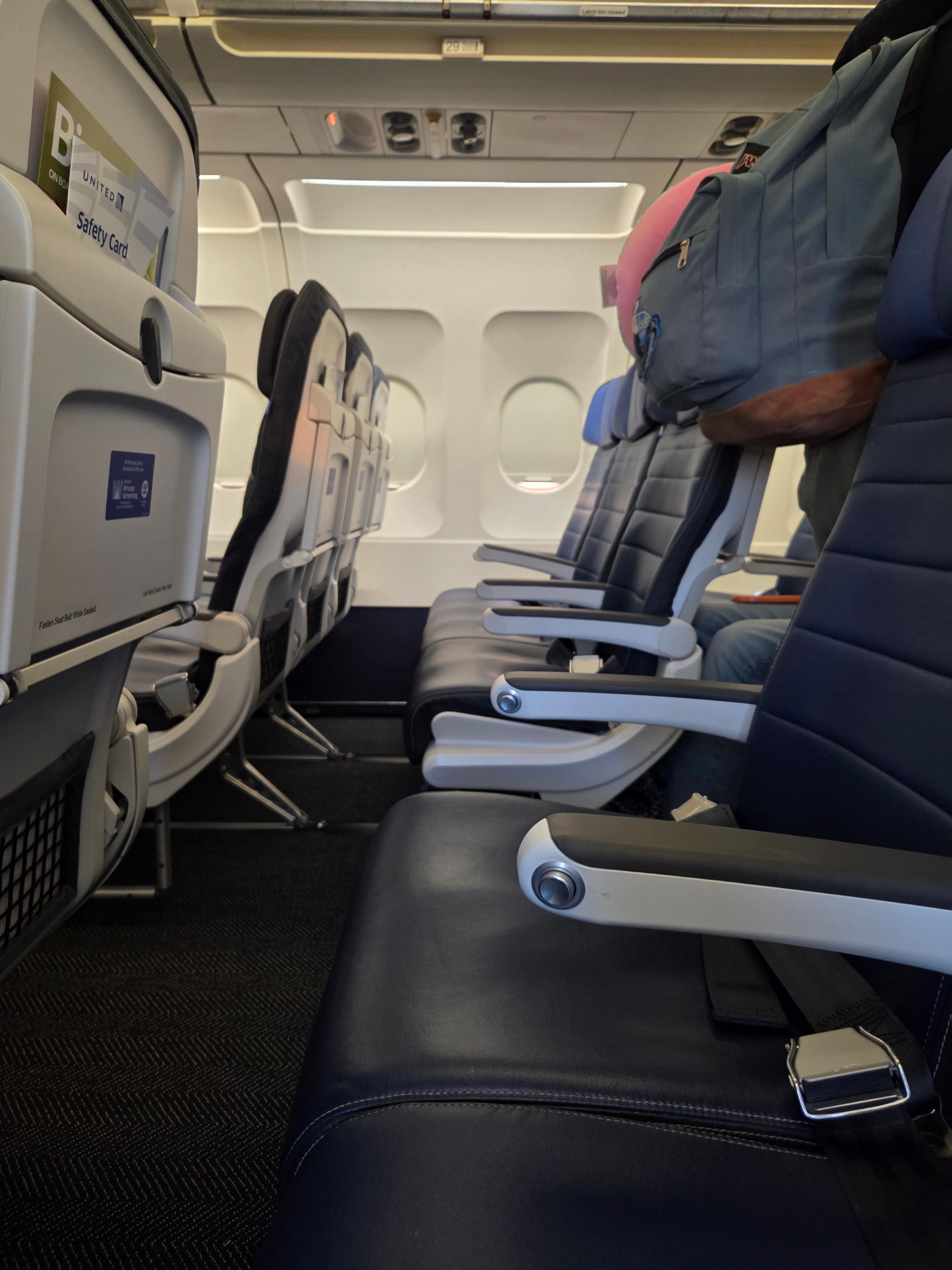 다른 항공사의 경우 이코노미 플러스 승객은 우선 탑승을 해서 오버헤드빈의 공간을 우선적으로 사용할 수 있게 해 주는데요, 유나이티드 항공의 경우 이코노미 플러스 승객도 다른 이코노미 승객과 함께 탑승하기 때문에 특히 이코노미 플러스 복도 좌석에 앉으시는 경우 오버헤드빈의 공간이 부족한 경우가 있을 수도 있다고 생각합니다. 실제로 제가 탑승한 UA457의 경우도 만석이었고, 게이트 포디엄에서 휴대 수하물을 위탁으로 부치는 승객이 있었음에도 오버헤드빈의 공간이 부족해서 본인 자리와 멀리 떨어진 곳에 캐리온 캐리어를 보관하는 승객도 꽤 있었습니다.9. 좌석