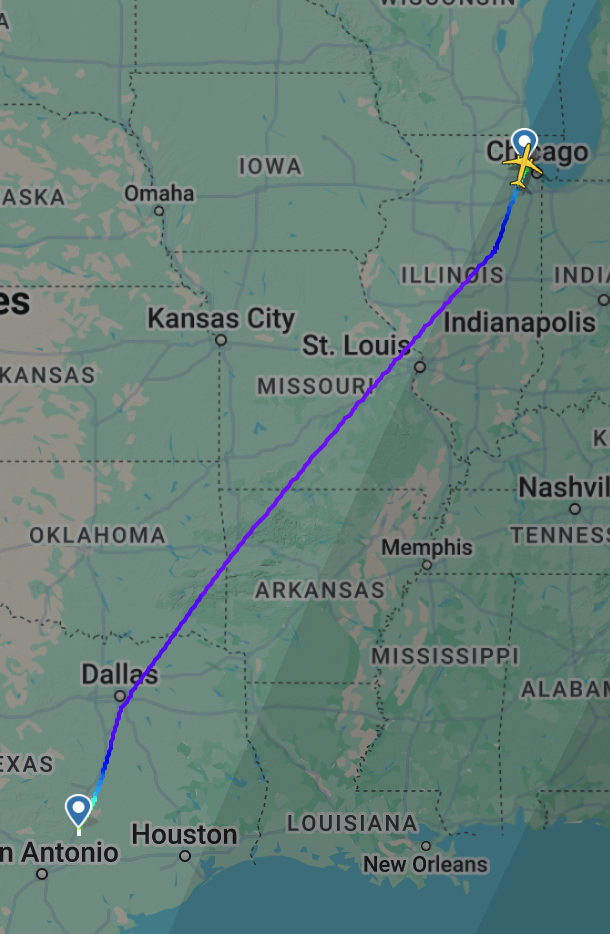 - 노선: ORD(미국 시카고 오헤어 국제공항) → AUS(미국 오스틴 버그스트롬 국제공항), UA457, 19:55 → 22:59, Duration 3h 4m