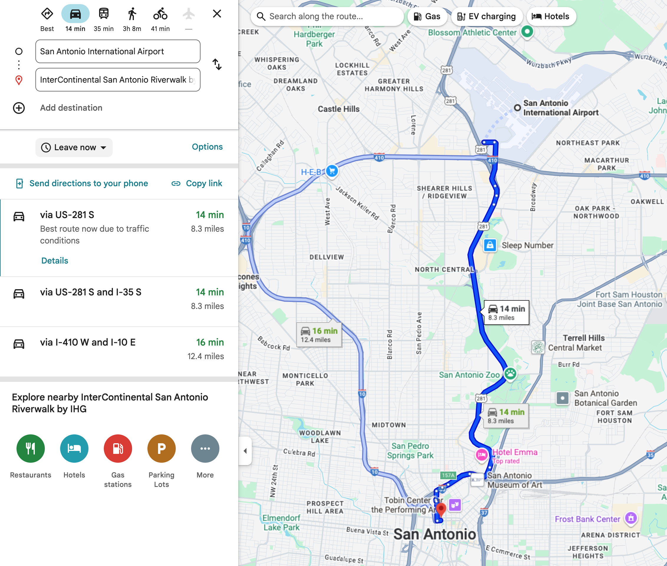 인터컨티넨탈 샌 안토니오 리버워크 가는 길, image courtesy of Google Maps