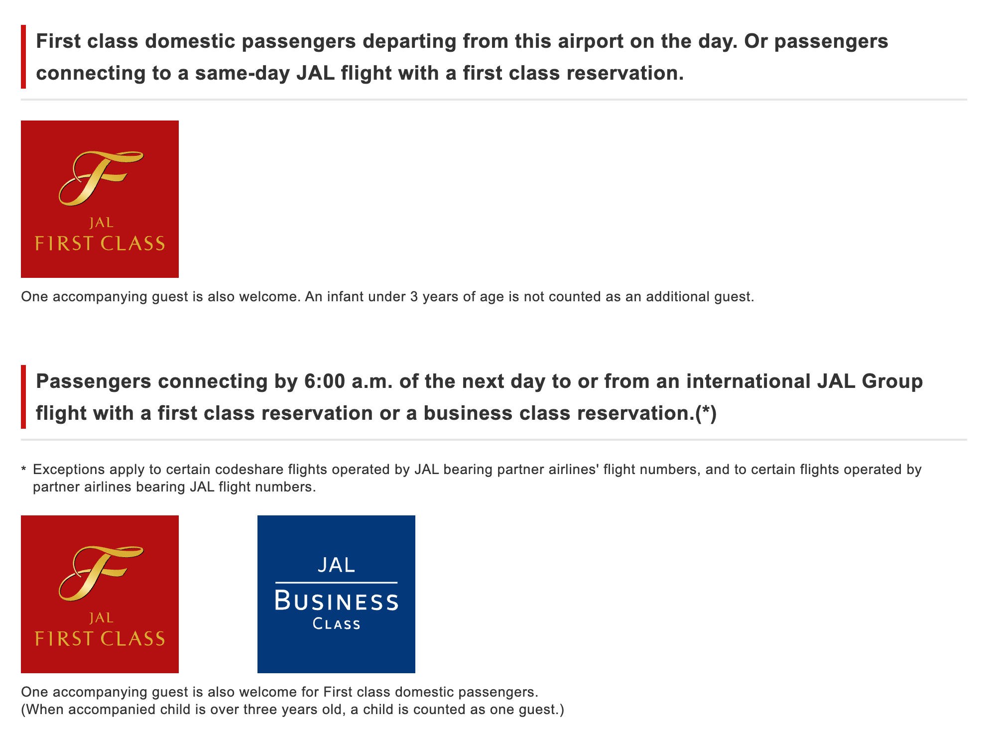 • 당일 또는 다음날 6시 전에 출발하는 일본항공 국제선 일등석 또는 비즈니스석을 이용하거나, 이용한 승객 본인.