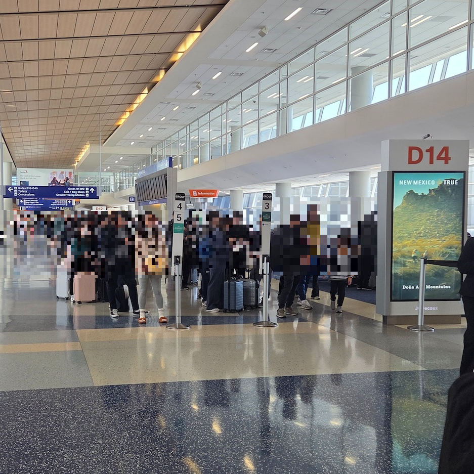 일본항공 JL11편이 출발했던 댈러스 포트워스 공항 D14게이트 JL11편의 탑승은 우선 탑승 후 보딩 그룹 순서에 맞게 진행됩니다. 우선탑승에는 임산부, 어린아이와 함께 여행하는 승객, 장애인, 특별한 도움이 필요한 승객들이 해당되며 우선탑승 순서가 지났더라도 이에 해당되는 승객이라면 직원이 바로 탑승할 수 있게 도와줍니다. 저는 이코노미 클래스 탑승이었지만 원월드 사파이어 등급 회원이었기에 보딩그룹 2로 탑승했습니다. 댈러스 포트워스 국제공항에서 일본항공 항공편에 탑승하기 위해 게이트를 통과해 보딩 브릿지로 향하다 보면 항상 일본항공 댈러스 포트워스 공항 지점장으로 생각되는 분이 인사를 해주시는 모습을 볼 수 있는데요, 이번 탑승에서도 마찬가지였습니다. 좋다 나쁘다의 느낌보다는 일본 특유의 환대나 서비스 문화를 표현하는 오모테나시 문화를 이렇게 발견할 수 있구나 하는 느낌이 듭니다. 참고로 보딩 그룹 4와 보딩 그룹 5는 줄도 함께 서고 보딩도 같은 시간에 이루어지기 때문에 보딩 그룹이 5개로 나뉘어져 있지만, 실제로는 4 단계로 탑승한다고 생각하시면 편할 것 같습니다.