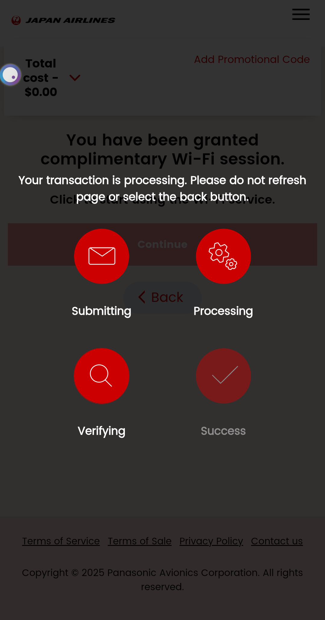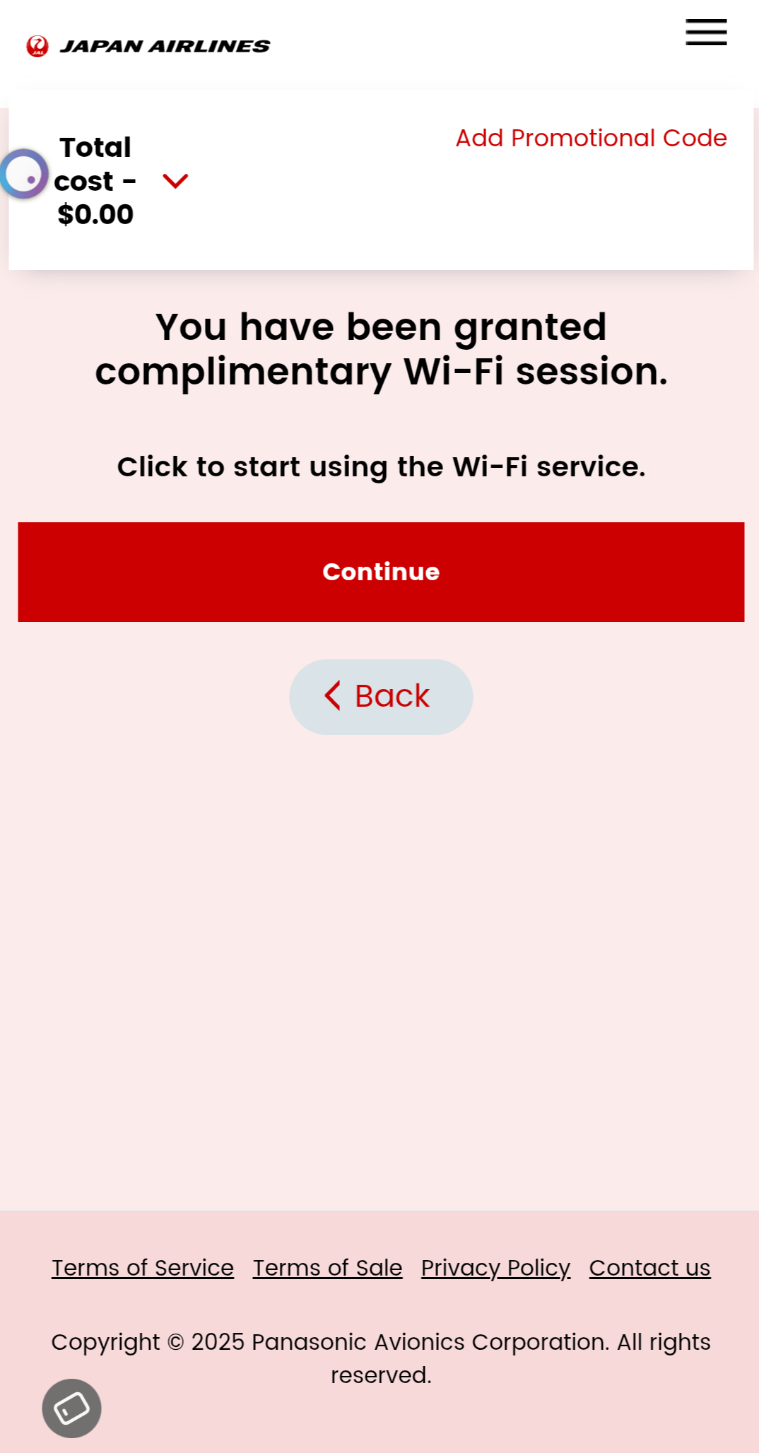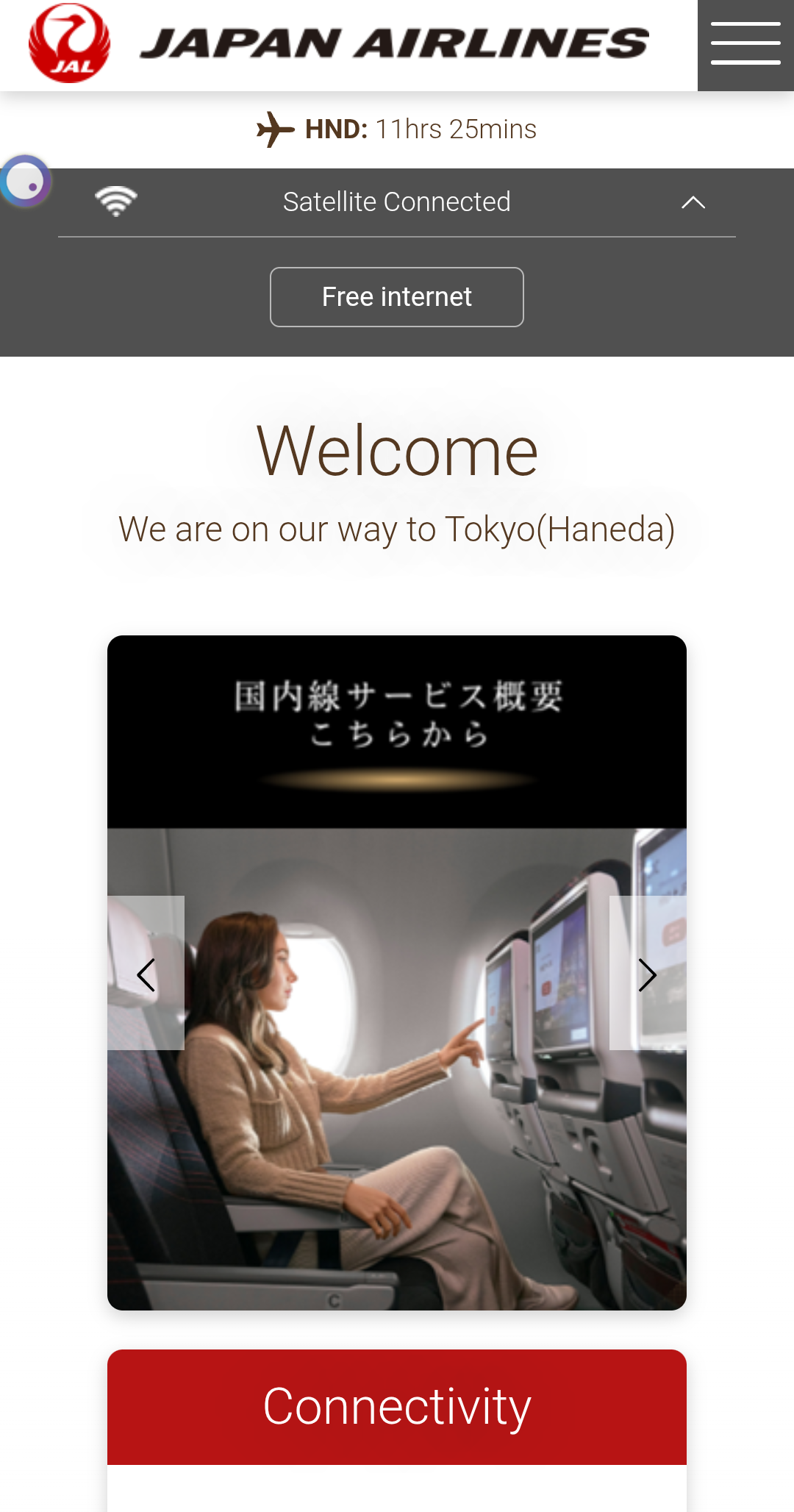 일본항공 A350-1000 기내 와이파이 접속 화면