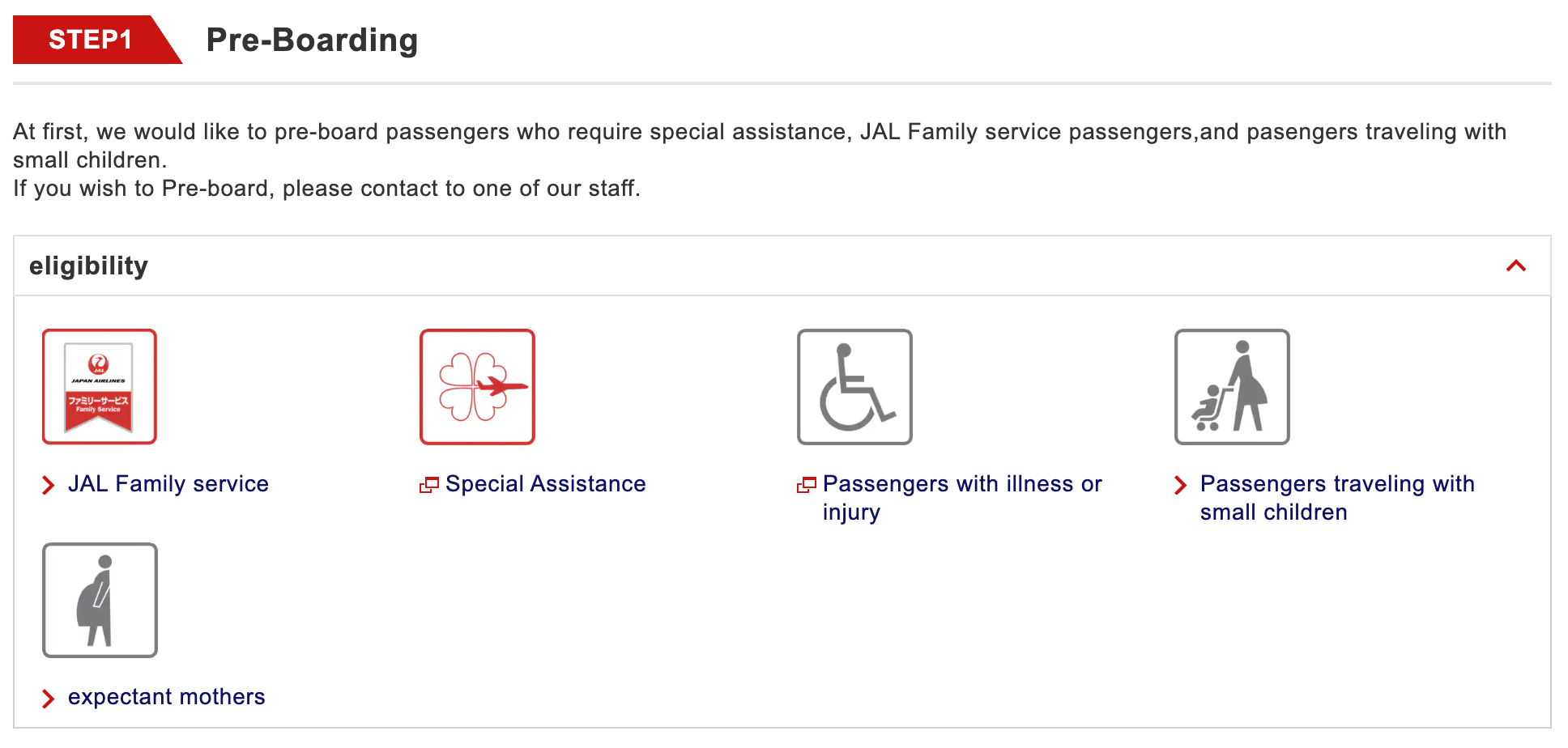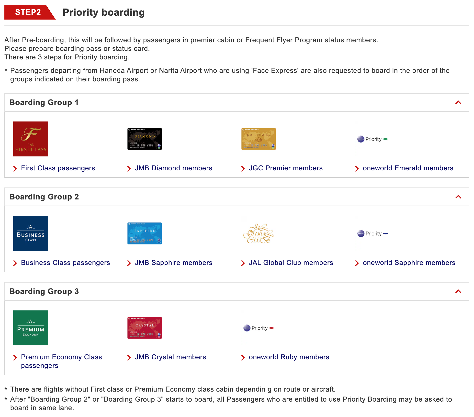 일본항공 프리보딩 대상 탑승객 (c) jal.co.jp/jp/en/