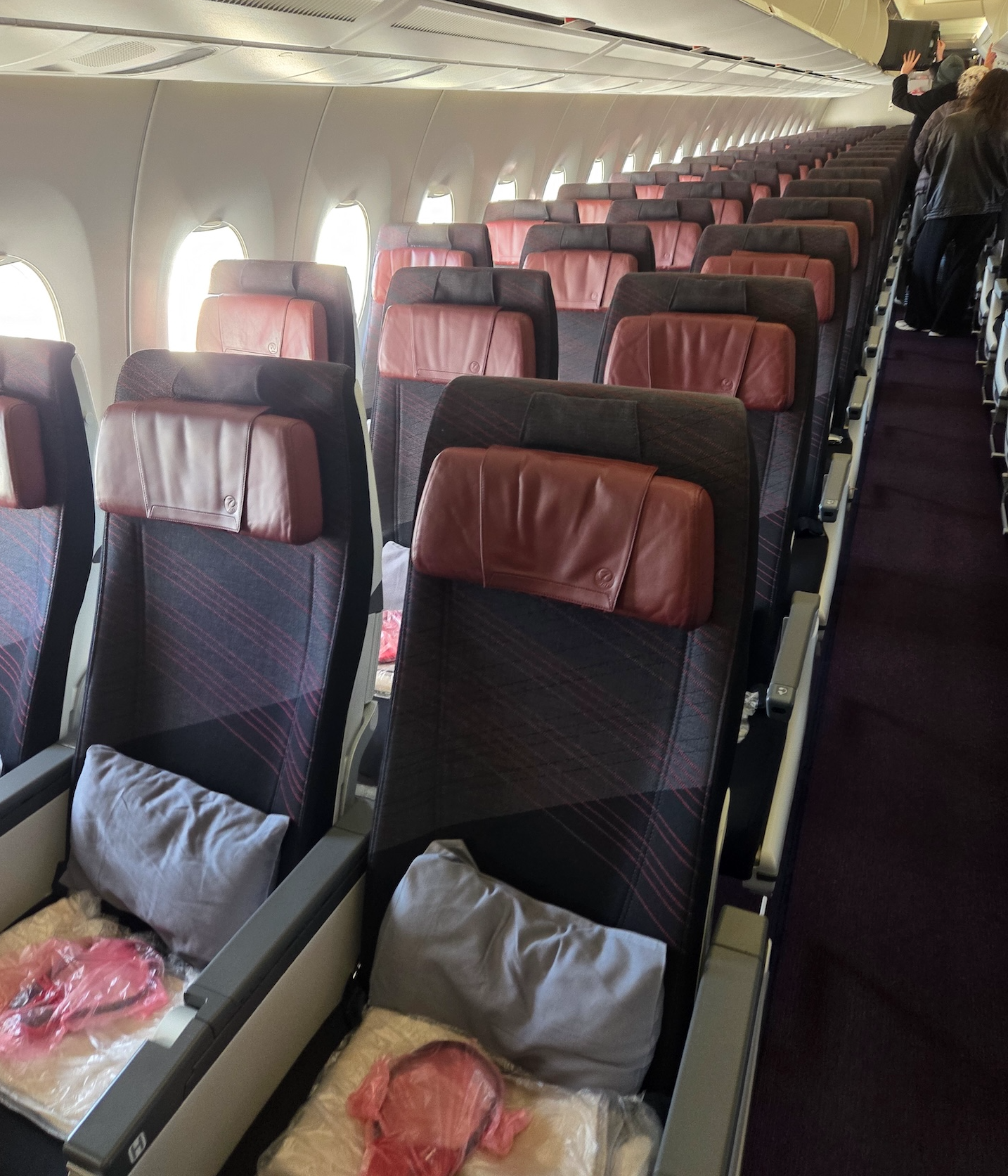 보딩하면서 본 일본항공 A350-1000 비즈니스 클래스 좌석과 프리미엄 이코노미 클래스 좌석