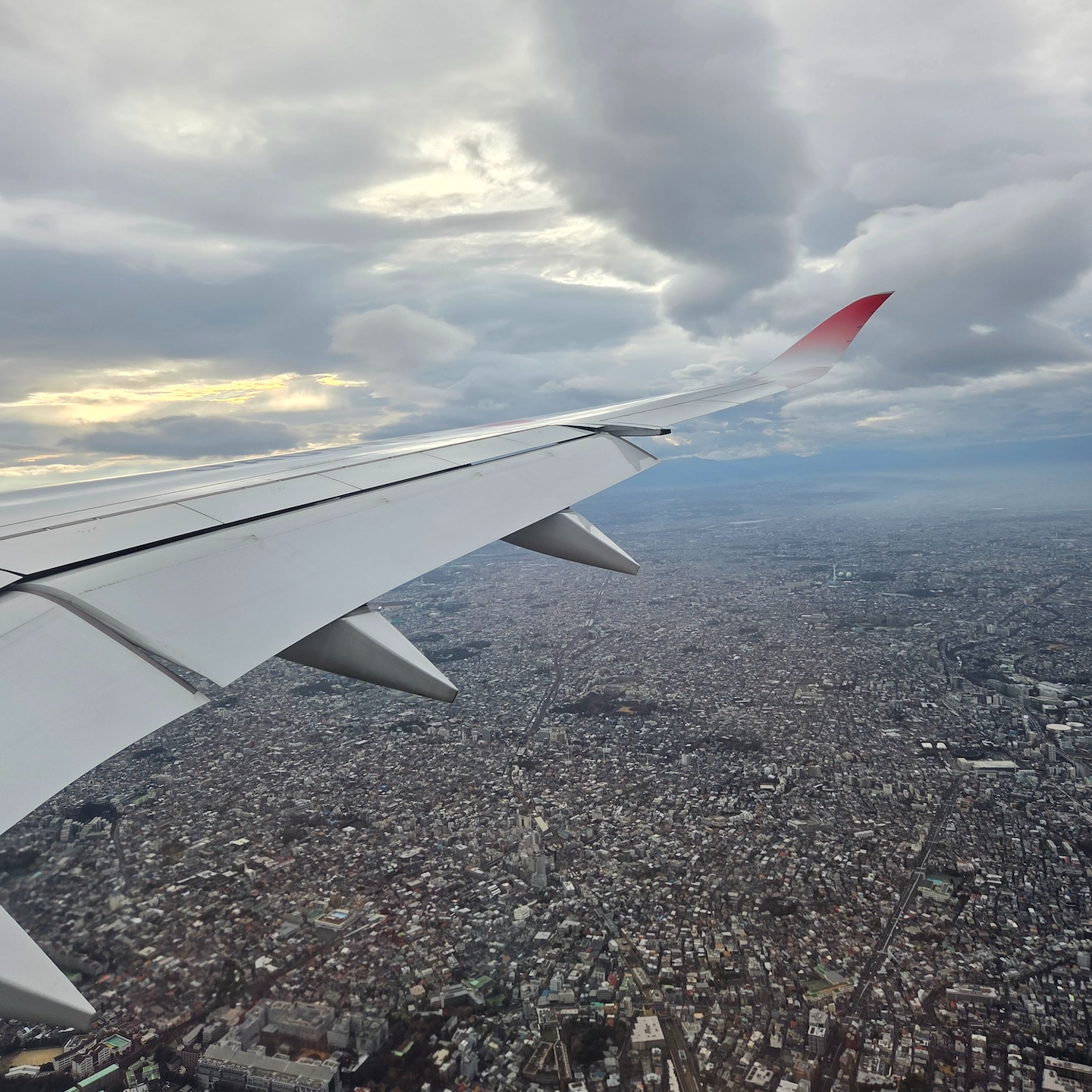 착륙중인 일본항공 A350-1000 JL11 항공편 제가 탑승했던 일본항공 JL11편은 예정된 시간보다 5분 늦은 오후 3시 30분에 일본 도쿄 하네다 국제공항에 착륙했습니다. 중간에 난기류를 만나서 잠시 순항고도를 조금 낮추는 것 말고는 큰 특이사항은 없는 비행이었지만 실제로 게이트에 도착한 시간은 예정 시간보다 15분 정도 늦은 시간이었습니다. 이상하게 일본항공의 비행편비행 편 중 JL11편은 정시 출발 했고, 비행 중 특이사항이 많지도 않았는데 예정 도착 시간에 굉장히 빠듯하게 도착하는 경우가 많은 것 같습니다. 일반적으로 이륙에서 착륙까지를 뜻하는 비행시간과 비교해 출발 게이트에서 움직이기 시작해 도착 게이트에 도착할 때 까지를 뜻하는 블록 타임은 여유롭게 잡기 때문에 큰 특이사항이 없다면 예상 도착시간보다 30분 정도 일찍 도착하는 다른 비행 편과 달리 JL11 편의 경우 이 블록 타임이 굉장히 타이트하게 잡힌 것 같은 느낌입니다.