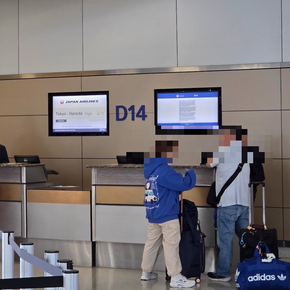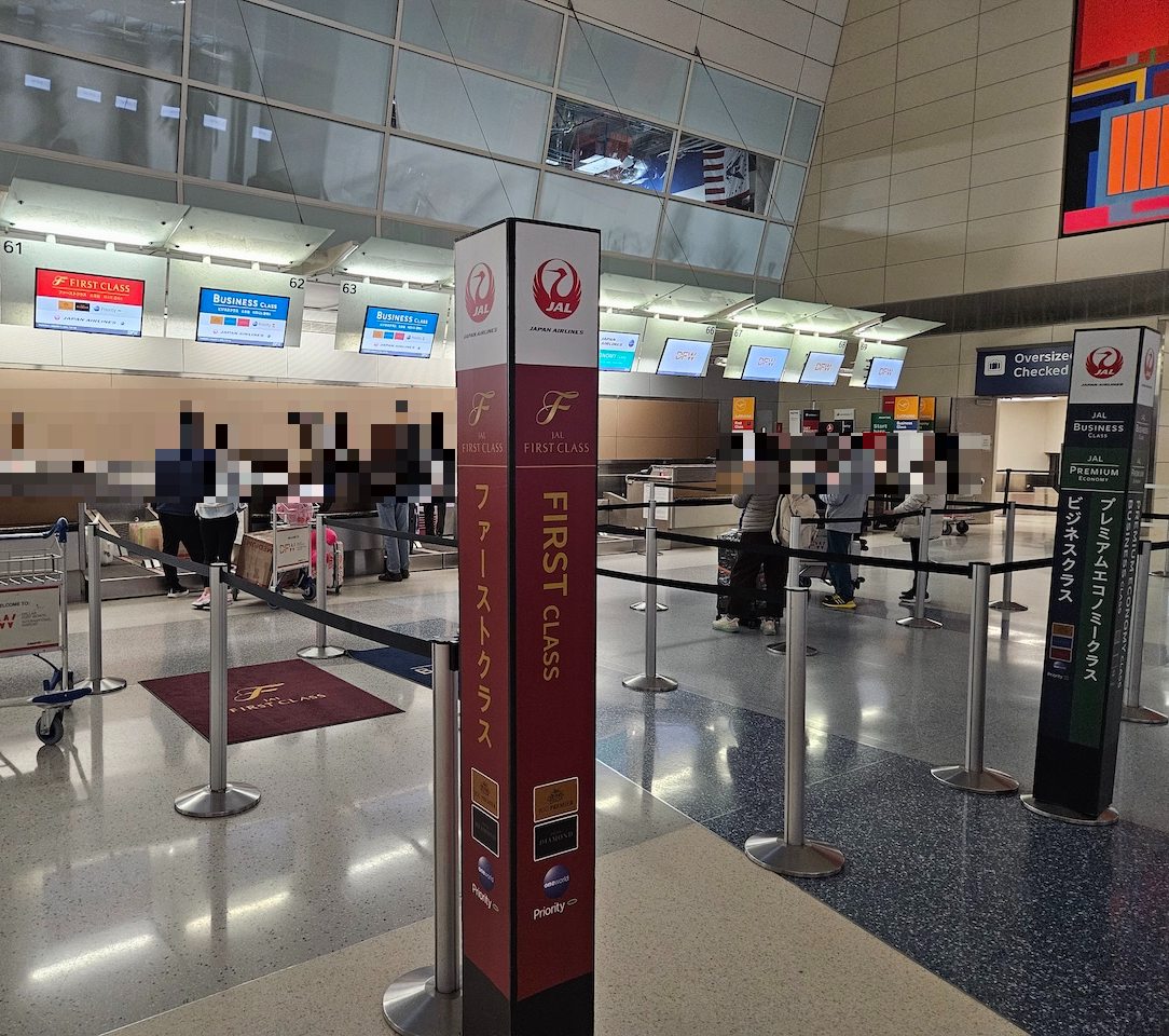 댈러스 포트워스 공항 일본항공 체크인 카운터 도쿄 하네다 국제공항으로 가는 일본항공의 JL11편 체크인은 댈러스 포트워스 국제공항 D터미널의 60번대 카운터에서 이루어집니다. 대한항공 카운터와 비슷한 곳에 위치하고 있기 때문에 찾기 어렵지는 않습니다. 체크인은 출발 3시간 전인 약 오전 7시 30분 정도부터 시작하고 출발 1시간 전인 오전 9시 30분 정도에 마감합니다. 저는 오스틴 공항에서 모든 구간의 체크인을 마쳤기 때문에 따로 댈러스 공항에서 체크인을 하지는 않았습니다. 일본항공이 운항하는 A350-1000의 전체 정원이 239명으로 전 세계에서 가장 적은 인원수이기 때문에 체크인 승객이 많지는 않을 걸로 예상됩니다.