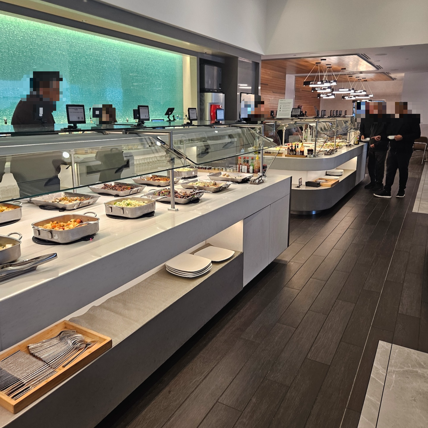 일본항공 댈러스 포트워스 공항 라운지 입장 정보 (c) jal.co.jp/jp/en/ 일본항공이 출발하는 오전 10시 30분 근처에는 아메리칸 항공이 운항하는 아시아 노선들이 출발하는 시간이라 플래그십 라운지에 사람들이 있는 편이었는데요, 다행히 운항 편수가 오후 유럽행 노선들보다 많지 않아 아주 붐비지는 않았습니다. 플래그십 라운지에서는 대략 10시 30분 정도까지 아침 메뉴를 제공하기 때문에 JL11편을 타신다면 플래그십 라운지에서 아침 식사를 드실 수 있습니다. 개인적으로 댈러스 포트워스 공항의 아메리칸 항공 플래그십 라운지는 댈러스 공항 D터미널에서 갈 수 있는 가장 좋은 라운지 중 하나라고 생각하기에 만약 입장이 가능하시다면 다른 라운지보다 이 라운지를 이용하시는 걸 추천드립니다.