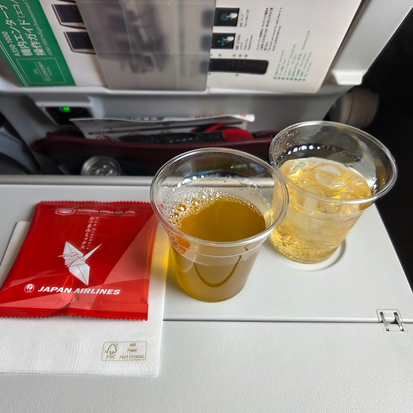 이번 탑승에서 아쉬웠던 부분이 몇가지 있었습니다. 가장 먼저 기내 테이블의 위생 상태가 좋지 않았습니다. 테이블에 무언가 눌어붙은 자국이 있어서 항상 가지고 다니는 알코올 스왑으로 직접 닦았습니다. 항공기 기내 정비 때마다 테이블을 꼼꼼히 닦지 않는 건 알고 있기에 그러려니 하는 편이지만, 그러려니 하는 것도 내 테이블에 더러운 자국이 있는 건 아무래도 체감상 조금 다른 것 같긴 합니다. 또한 기내에서 사용할 수 있는 치약과 칫솔이 제공되지 않았다는 점도 아쉬웠습니다. 아시아권 항공사들 중 최고로 꼽히는 항공사들은 대부분 이코노미 클래스에서도 기내에서 사용할 수 있는 간단한 치약과 칫솔을 제공하는 경우가 많은데 이코노미 클래스 평가에서 상위권을 달리는 일본항공이라는 점을 감안했을 때 분명히 아쉬운 부분이기는 합니다.
