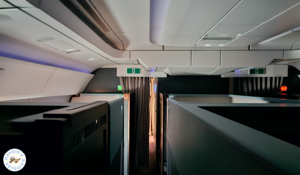 일본항공 A350-1000 일등석 후기 - A35K 일등석 캐빈 일본항공 A350-1000 퍼스트 캐빈의 첫인상은 ‘넓다’ 였습니다. 좌석도 넓었지만 처음 딱 들어왔을 때 각 좌석의 파티션이 매우 높았음에도 퍼스트 캐빈에 (창가 쪽 좌석에도) 오버헤드빈이 아예 없기에 탁 트인 느낌이 들었습니다. 다들 아시다시피 일본항공 A35K 일등석 캐빈은 1-1-1 배열로 되어 있는데 1A와 1D가 같은 복도를 마주하고, 2D와 2K가 같은 복도를 마주하고 있는 구성으로 되어있습니다. 이번 비행에서 저의 좌석은 1A였습니다. 오늘 비행은 프리미엄 이코노미, 비즈니스는 만석, 이코노미는 거의 만석이었음에도 퍼스트는 6석 중 3석만 채워가는 비행이었습니다. 운이 좋게도 다른 두 분이 각각 1K, 2K를 이용하셔서 제 복도 쪽의 좌석은 저만 이용을 하다 보니 비행기 하기할 때를 제외하고는 다른 일등석 승객을 마주칠 일도 없었습니다.