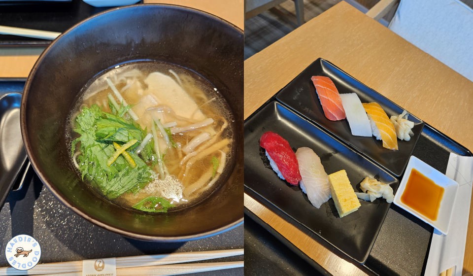 일본항공 A350-1000 일등석 후기 - 하네다 공항 일본항공 퍼스트 라운지 2 일본항공 국제선 퍼스트 클래스 승객은 터미널 3의 JAL 퍼스트 라운지를 이용할 수 있습니다. 하네다 공항의 퍼스트 라운지는 역시나 좋았습니다. 다만, 원월드 에메랄드에 상응하는 등급의 일본항공 고객들이 많기에 확실히 라운지에는 사람이 어느 정도 있는 편입니다. 물론 사쿠라 라운지와 비교하면 거의 없는 수준이기도 하고요. 저는 항상 퍼스트 라운지에 가면 오른쪽이 아닌 왼쪽으로 향합니다. (항상 왼쪽이 덜 붐빕니다) 왼쪽에 짐을 보관할 수 있는 라커에 짐을 넣어두고 4층에서 식사를 한 후 5층에서 간단하게 술과 차를 마신 후 탑승했습니다. 이번에 처음으로 베지테리언 스시에 도전해 봤는데 신기한 경험이었습니다. 연어 참치 오징어로 구성되어 있었는데 사실 얘네들끼리의 차이점은 잘 모르겠습니다. 식감은 젤리 같은 느낌이 있었고 지방이 없어 와사비 향이 강하게 느껴졌습니다. 다음에 먹는다면 와사비를 빼고 먹겠지만.. 굳이 먹을까 싶습니다. 스시는 부시리, 참치, 계란으로 구성되어 있었고 항상 그랬듯 라운지에서 먹을 수 있는 스시로는 참 맛있었습니다. 이번에 가장 맛있게 먹었던 건 아푸리 유자 & 소금 라멘으로 담백한 국물에 살짝씩 치고 오는 유자향이 너무 좋았습니다. 역시나 일본 가정식도 먹었는데 일본 특유의 두툼한 김이 맛있었고요. 식사를 하면서 생맥주와 샴페인을 했지만 5층에 있는 살롱으로 하서 야마자키 12년 한잔을 마셨습니다. 항상 느끼는 거지만 야마자키는 맛있지만 그 돈을 주고 사 먹을 정도는 아닌 것 같습니다. 히비키도 한잔 마실까 하다, 비행기에서 마실 것들도 많기에 따뜻한 호지차 한잔으로 마무리를 했습니다.