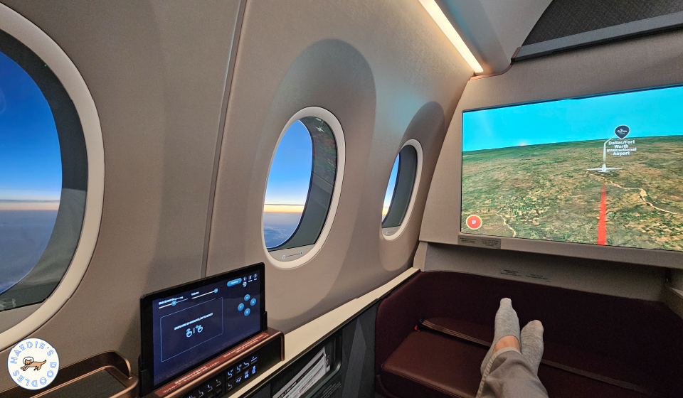 하기할 때는 미국 공항이기에 보딩 브릿지가 하나만 연결되었습니다. 하지만 기내 방송으로도 일단 일등석 승객 내린 다음에 비즈니스 승객 내린다고 했고, 승무원분께서 L2도어까지 에스코트해주셔서 모두의 시선을 받으며 도어 앞에서 기다리다가 1등으로 내렸습니다. 비행과 상관없는 여담이지만 중부에 있는 공항이 서부의 공항들에 비해 입국이 훨씬 간단하고 빠르고 좋은 것 같아요. LAX나 SFO의 경우 입국심사가 꽤 오래 걸리는 편인데, 달라스에서는 특별한 경우가 아니면 비교적 빠르게 입국 심사가 진행되는 것 같습니다. 이런 점 때문에 서부에 있는 공항으로 입국하는 걸 되도록 피하게 되는 것 같아요. 이렇게 약 12시간의 비행을 마무리했습니다.