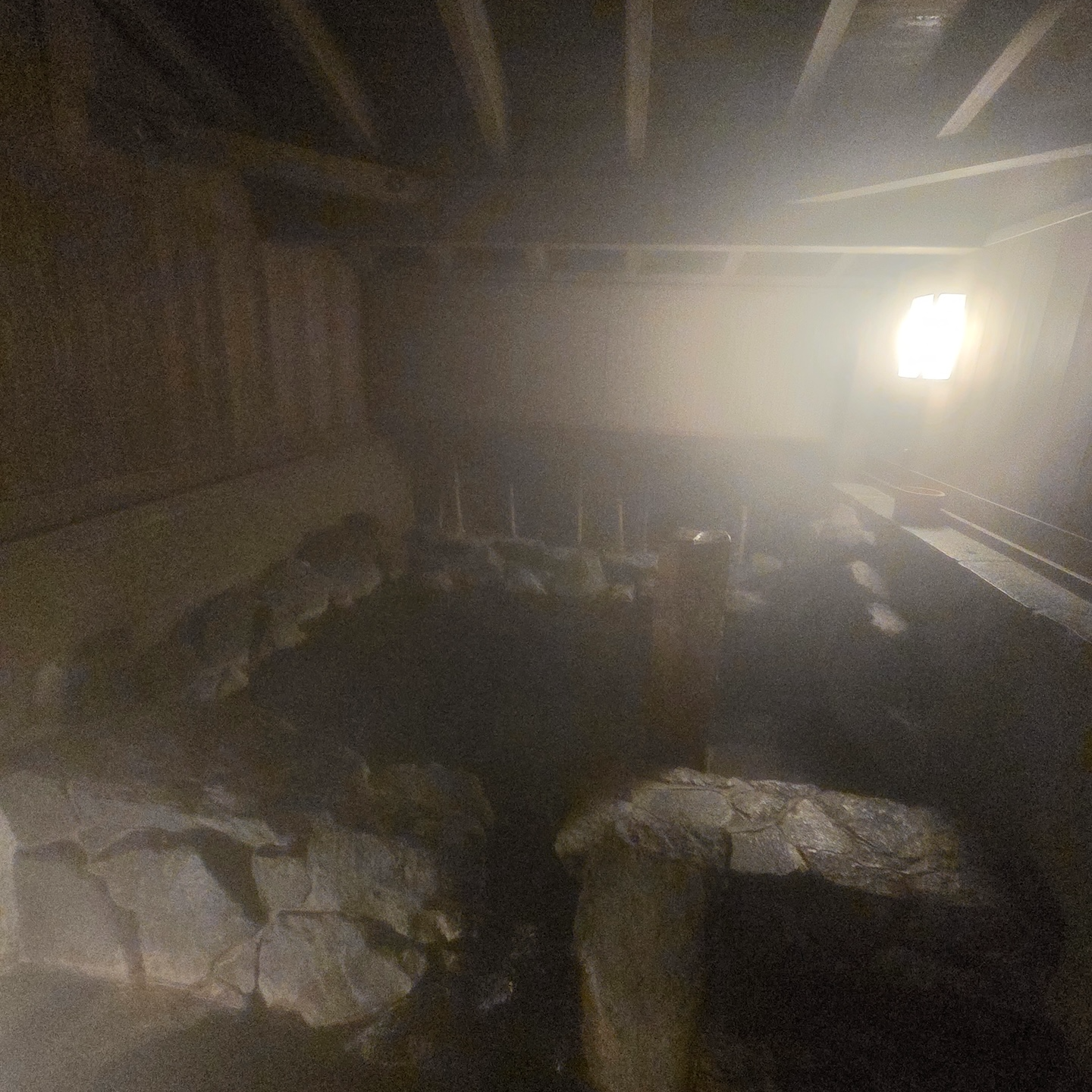 하지만, 아무래도 부부 또는 커플끼리 여행을 오면 함께 온천을 즐길 수 있는 장점을 가진 전세탕이 인기가 많을 수밖에 없습니다. 조잔케이 유라쿠 소안에는 전세탕이 4개가 있습니다. 돌탕, 히노키탕, 히바탕, 도자기 탕이 있으며 따로 예약 없이 전세탕으로 향하는 길에 있는 전세탕 이용 상황판을 보고 비어있는 전세탕이 있으면 가서 이용하면 되는 방식이고 최대 이용시간은 40분입니다. 전세탕에는 따로 샤워시설이 없기 때문에 방이나 대욕장에서 미리 샤워를 하고 와야 합니다. 전세탕은 체크인 시간 직후인 오후 3~4시와 자정 이후 늦은 밤부터 아침 식사 전인 오전 6시 정도까지는 대기 없이 원하는 탕에 들어갈 수 있는 경우가 많습니다. 저는 체크인 직후 전세탕을 한번 이용했고 이른 새벽인 4시 30분 정도에 모든 전세탕을 다 이용했습니다. 가장 인기가 많은 건 돌탕이고 개인적으로는 히노키 탕이 들어가자마자 편백나무 향이 확 풍겨서 좋았습니다. 전세탕을 이용하실 때는 반드시 전세탕 입구가 잘 잠겼는지 확인하셔야 합니다. 저는 전세탕이 비어있다고 해서 문을 열고 들어간 순간 안에서 한국말로 ‘여기 사람 있어요’ 하는 소리가 들려 황급히 나가야만 했습니다. 분명 문은 열려있었는데 말이죠.