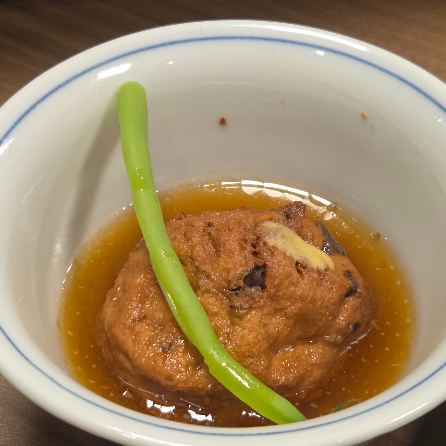 작은 반찬으로는 고마츠나 조개조림, 소고기 조림, 오징어 미소 무침이 나왔습니다. 고마츠나는 일본의 대표적인 잎채소로 식감이 아삭거려서 좋으면서 다시 + 조개 국물의 감칠맛과 조개와 버섯의 쫄깃함이 잘 어울렸습니다. 소고기 조림의 경우 간이 강하지 않고 부드러워 나쁘지 않았지만 미리 세팅이 되어있어서인지 식어있어 온도감이 아쉬웠습니다. 오징어는 살짝 오버쿡이 된 듯 식감이 아쉬웠으나 미소 소스는 아주 맛있었습니다. 조림 요리로는 채소튀김두부가 나왔는데 얇게 썬 채소를 섞어 튀겨낸 두부(간모도키 느낌)를 국물에 자작하게 조린 요리로 고소함이 느껴지면서도 야채의 식감이 잘 어울렸습니다. 전반적으로 간이 세지 않고 두부향과 표고향과 가쓰오부시의 향과 감칠맛이 잘 어우러져 아주 맛있었습니다.