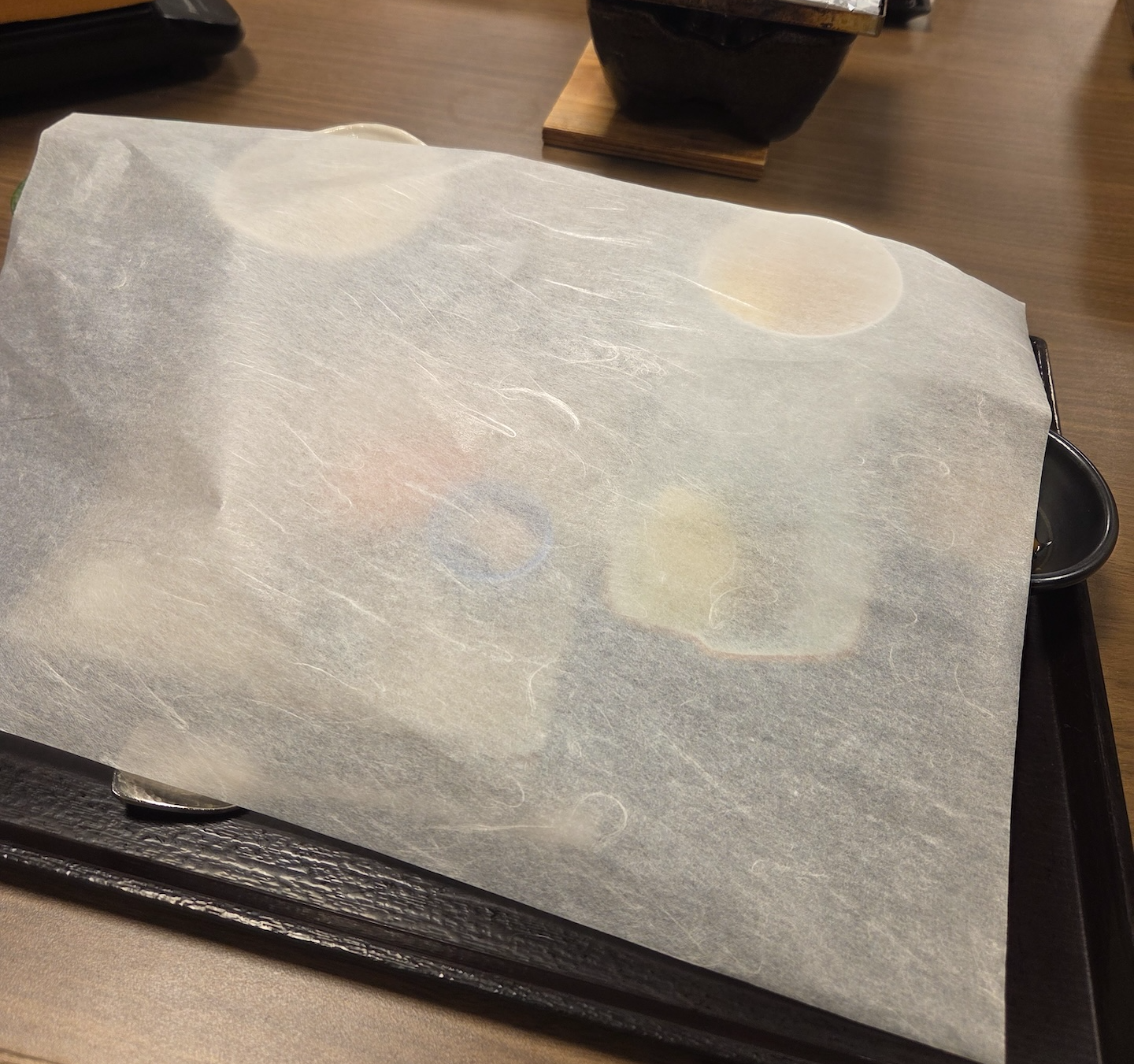 다음으로 제철 생선회로는 노랑가자미, 전복, 참치 적신, 홍살치의 네 종류가 나왔습니다. 노랑가자미의 경우 마츠카와카레이라고도 불리는 고급 생선인데요, 숙성이 되어서인지 부드러우면서도 쫄깃한 식감이 남아있고 기름이 적절하게 있어 고소했던 맛있던 회였습니다. 전복의 경우 신선하면서 꼬독했으나 아래에 깔린 다시마로 인해 비린맛에 약하신 분들은 다시마와 맞닿아있던 부분은 비리게 느껴질 수도 있겠다 싶었습니다. 적신은 신선하고 부드러웠으나 중간에 질긴 막이 전부 제거되어있지 않아서 아쉬움이 남았고, 킨키라고 불리는 홋카이도에서 고급 어종으로 유명한 홍살치의 경우 기름지면서도 풍미가 겉에 그을린 껍질에서 느껴지는 불향과 잘 어울렸습니다. 찍어먹을 수 있는 소스로는 간장, 다시마 소금,  영귤 식초가 제공되었는데 개인적으로는 간장에 살짝 찍어먹는 게 가장 맛있었습니다. 전복의 경우 비린맛을 가리기 위해 영귤식초에 찍어 먹는 것도 나쁘지 않았고요.