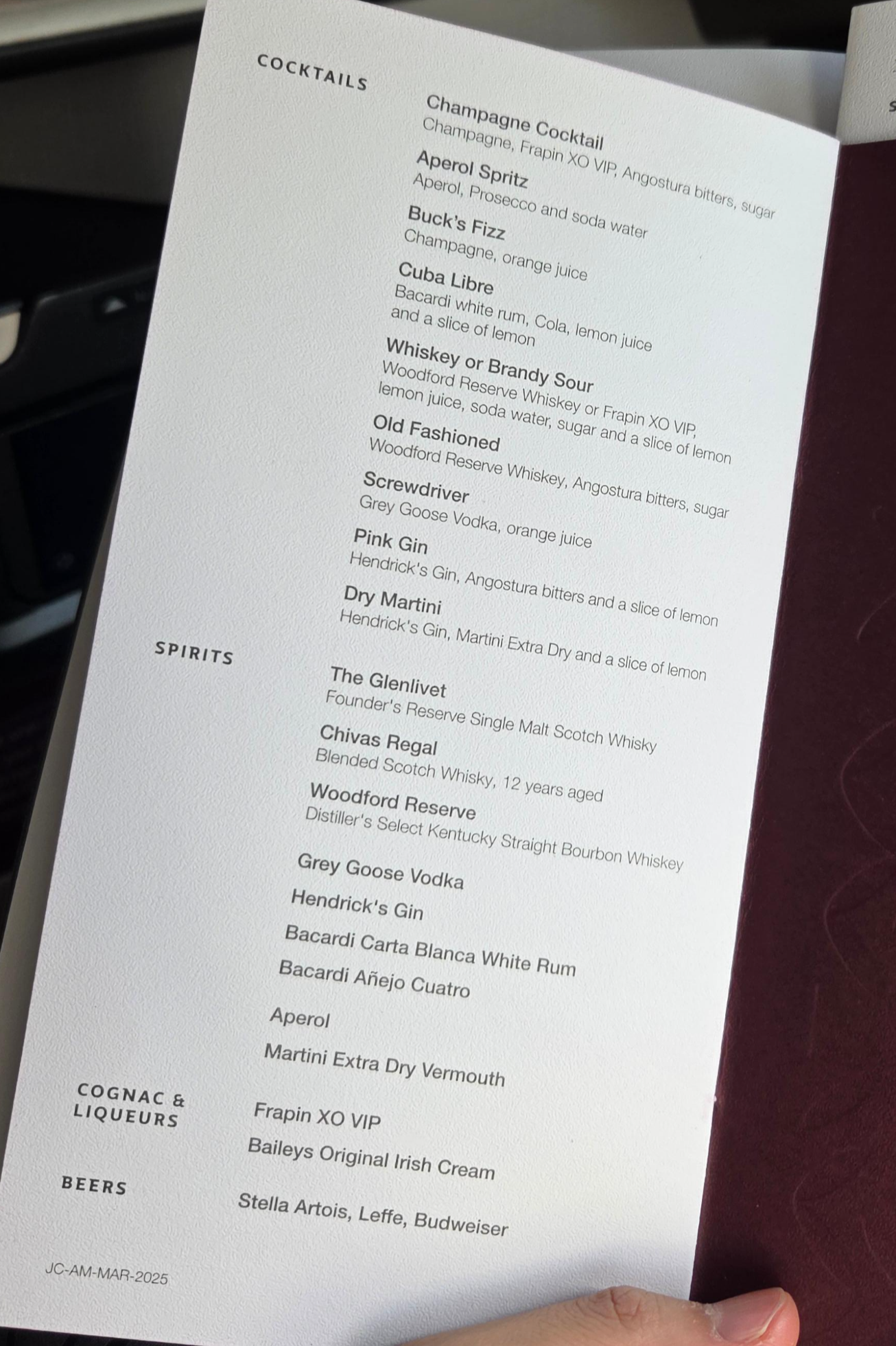 카타르 항공 장거리 비즈니스 클래스 주류 메뉴 1