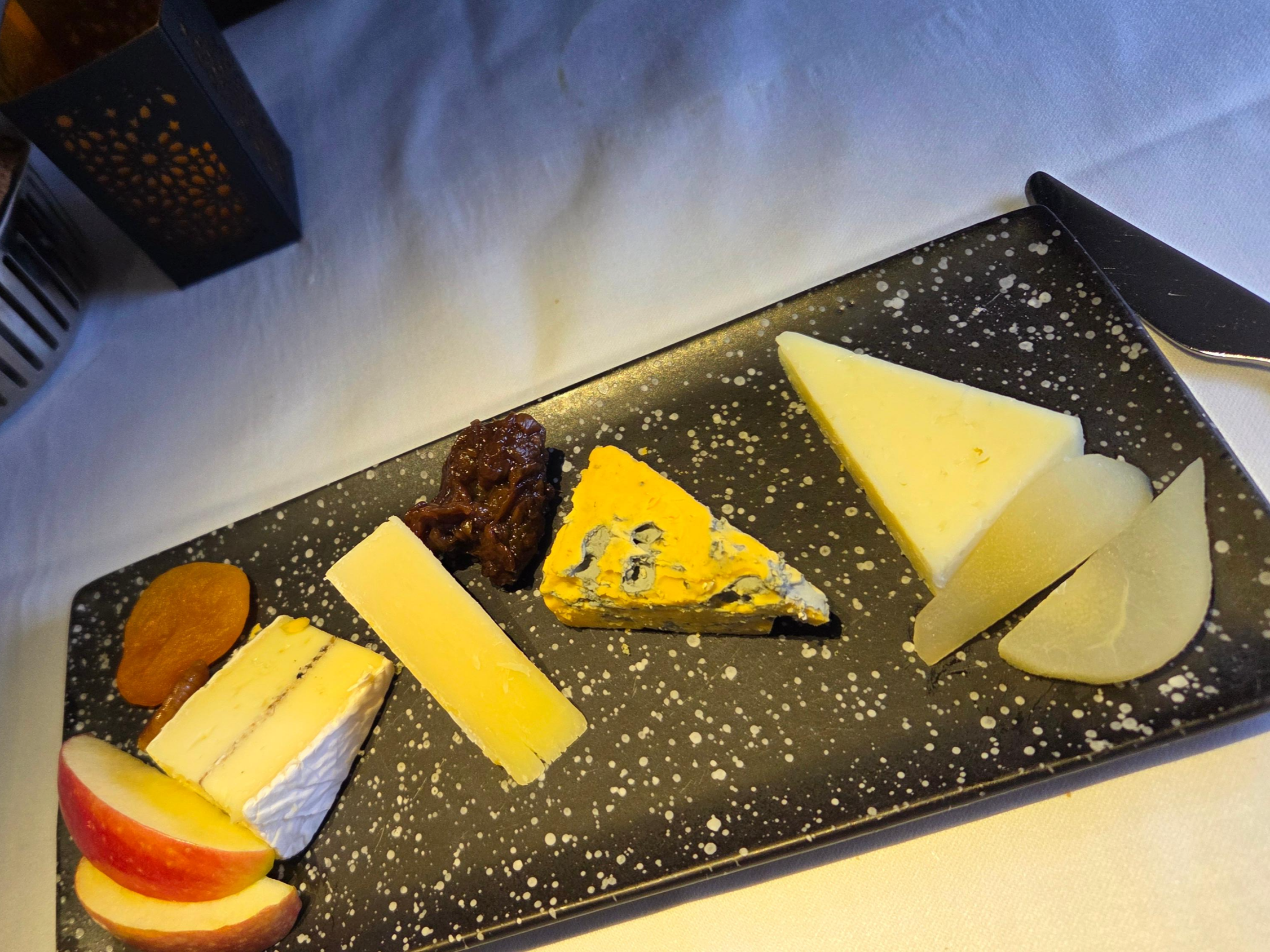 카타르 항공 장거리 비즈니스 클래스 디저트 치즈플레이트 갈비찜 후에는 치즈 플레이트가 나왔고요, 배가 많이 차서 다 먹지는 못했고, 제가 치즈를 잘 모르기에 어떤 치즈인지는 잘 모르는데(메뉴에도 나와있지 않았습니다), 4가지 치즈가 과일(서양 배, 사과, 푸룬)과 호두와 함께 제공되었습니다. 한 치즈는 블루치즈와 같이 곰팡이가 펴 있었는데 이 치즈도 향이 엄청 강하지는 않아서 괜찮았습니다. 원래 디저트로는 아이스크림을 먹으려고 했는데 주문이 누락되었는지 따로 주지 않았고, 저도 배가 불러서 다시 요청하지는 않았습니다. 대신 녹차와 아이스티를 한잔 더 시켜서 마무리했습니다. 아마 이 점심 식사가 이 비행의 메인이었을 텐데요, 훌륭한 식사였습니다. 비즈니스 클래스에서 캐비어를 볼 수 있다는 것도 큰 장점이고요, 다른 음식들도 맛있었습니다. 아쉬웠던 점은, 시간적 여유가 조금 더 있었으면 여유롭게 식사를 했을 텐데, 착륙이 얼마 남지 않은 상황이어서 빨리 먹으려고 하다 보니 식사를 충분히 즐기지 못한 것 같아 아쉬웠습니다.