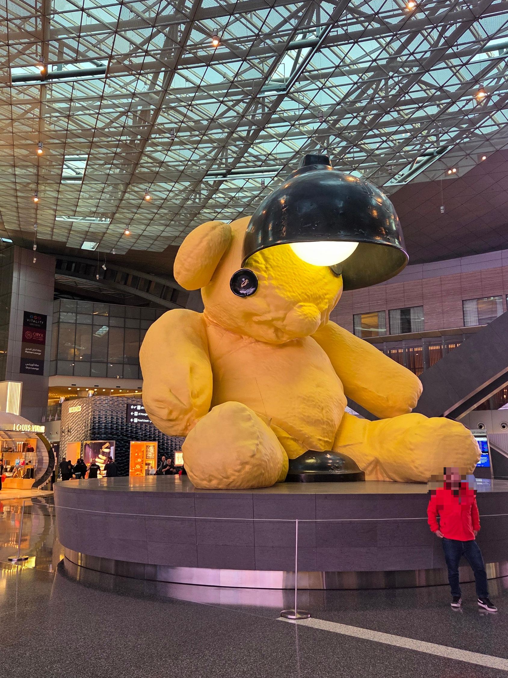 도하 하마드 국제공항 내부와 인기있는 곰 조형물 제가 탑승한 카타르 항공 QR729 편의 탑승은 C1게이트에서 이루어졌습니다. C1게이트는 알 무르잔 비즈니스 라운지 더 가든에서 걸어서 약 10분에서 15분 거리에 위치하고 있습니다. 때문에 보딩 시작 전에 시간을 넉넉하게 두시고 이동하시는 걸 추천드립니다. 환승을 하며 보안검사를 했음에도, 도하 하마드 국제공항에서는 게이트 앞에서 다시 한번 보안검사를 진행합니다. 저는 환승을 하며 보안검사를 했기에, 보안검사는 더 없을 것이라 생각해서 홍삼 액상 제품의 포장을 벗겨 내용물만 가방에 재포장을 했었습니다. 그런데 라운지에서 나오고 걸어가며 게이트 앞에서 보안검사를 한번 더 하는 걸 보고 망했다 싶었는데요, 다행히 별말 없이 지나가긴 했지만, 도하 하마드 국제공항에서 환승을 하시는 분들 중 면세품을 소지하신 분들은 만일을 위해 최종 목적지로 향하는 비행기에 탑승하기 전까지 포장을 유지하시는 걸 추천드립니다.