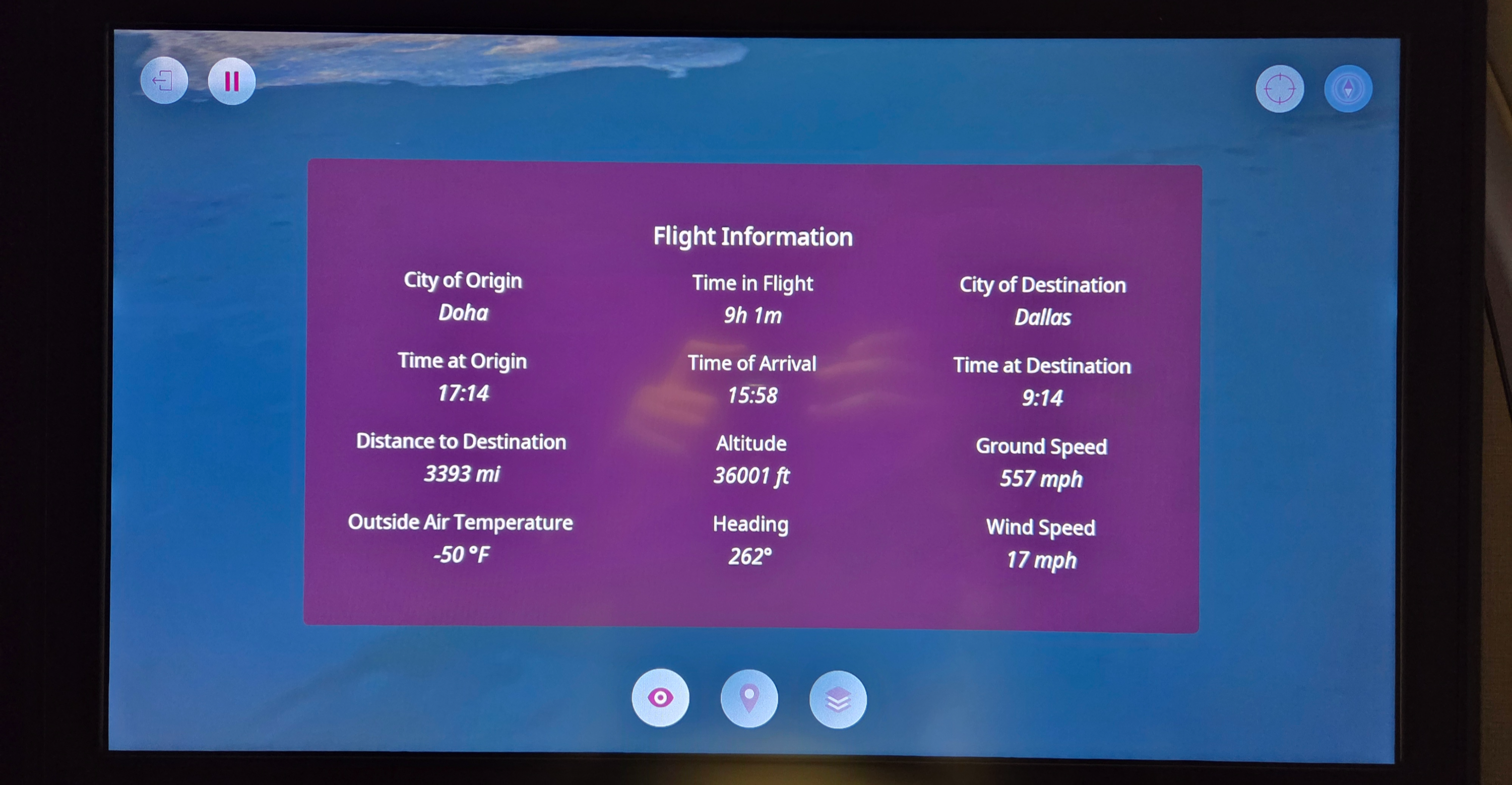카타르 항공의 A350-1000은 인터넷도 지원합니다. 카타르 항공 상용 고객 우대 프로그램인 프리빌리지 클럽 회원의 경우 항공편당 1시간의 인터넷이 무료로 제공되고, 제가 탔던 도하 → 댈러스 포트워스 노선의 경우 10 미국달러만 내면 비행 내내 인터넷을 사용할 수 있었습니다. 요즘에는 비즈니스 클래스 승객에게 인터넷을 무료로 제공하는 게 트렌드가 되어가기에, 비즈니스 클래스 승객에게 무료 와이파이가 지원되지 않는다는 점은 아쉬웠지만, 16시간에 달하는 비행시간 내내 인터넷 이용을 10달러라는 저렴한 가격에 지원한다는 점은 플러스라는 아이러니함이 있기도 했습니다. 인터넷 속도는 메시지를 주고받거나 웹 서핑을 하는 정도는 나쁘지 않았지만 동영상을 감상하기에는 부족한 속도였습니다. 또한 인터넷이 간혹 가다 끊기는 경우가 발생하는데 이 경우에는 인터넷 이용권을 구매하는 웹 사이트에서 재접속 버튼을 눌러줘야 하기에 해당 페이지는 인터넷이 연결되었더라도 종료하지 않고 다른 탭에 남겨두는 게 더 편리했습니다.16. 랜딩 및 입국심사