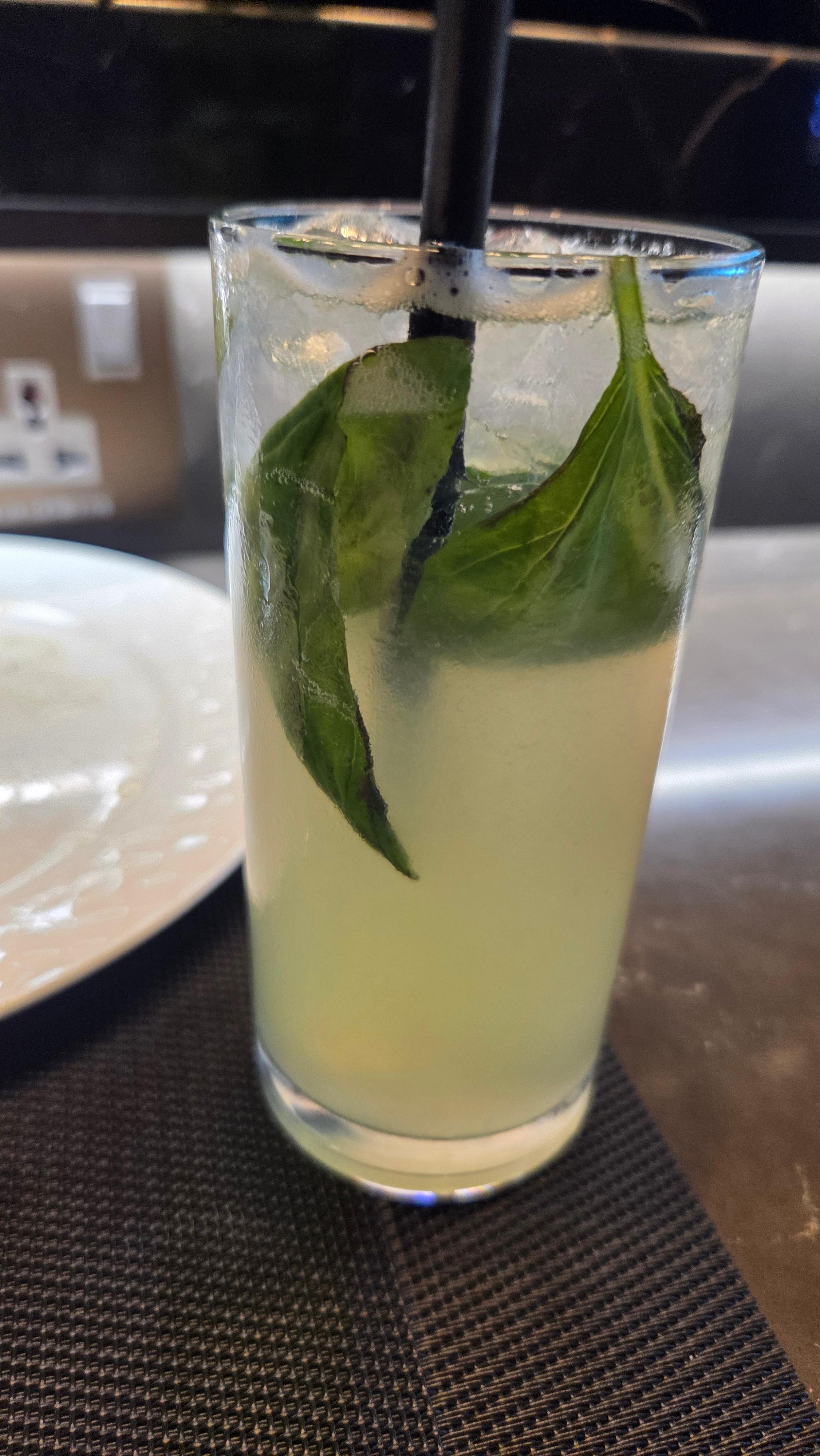 제가 알 무르잔 비즈니스 라운지 더 가든에 방문했을 때는 아침 식사 시간이라 제한적인 메뉴가 제공되었습니다. 뷔페에는 오믈렛, 소시지, 베이커리류, 수프, 죽 정도가 비치되어 있었고, 주문할 수 있는 메뉴로는 서양식 아침식사 메뉴인 오믈렛, 달걀 프라이, 에그 베네딕트, 토스트 등이 있었습니다. 대신 음료는 제한 없이 주문이 가능한데 저는 목테일인 파인애플 바질 스매시를 주문했습니다. 생각보다 파인애플 향이 너무 진하지 않으면서도 사과주스같이 가벼운 느낌의 파인애플 주스를 베이스로 레몬과 바질을 곁들여 상큼한, 맛있는 목테일이었습니다.