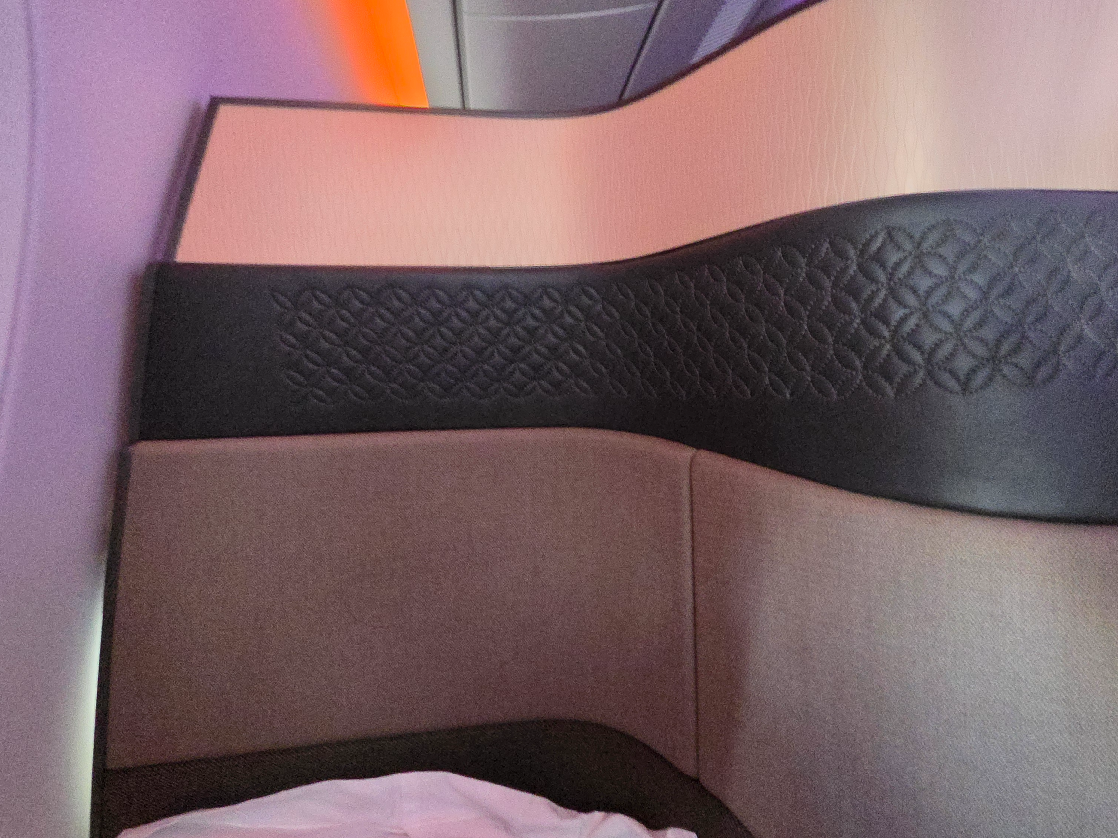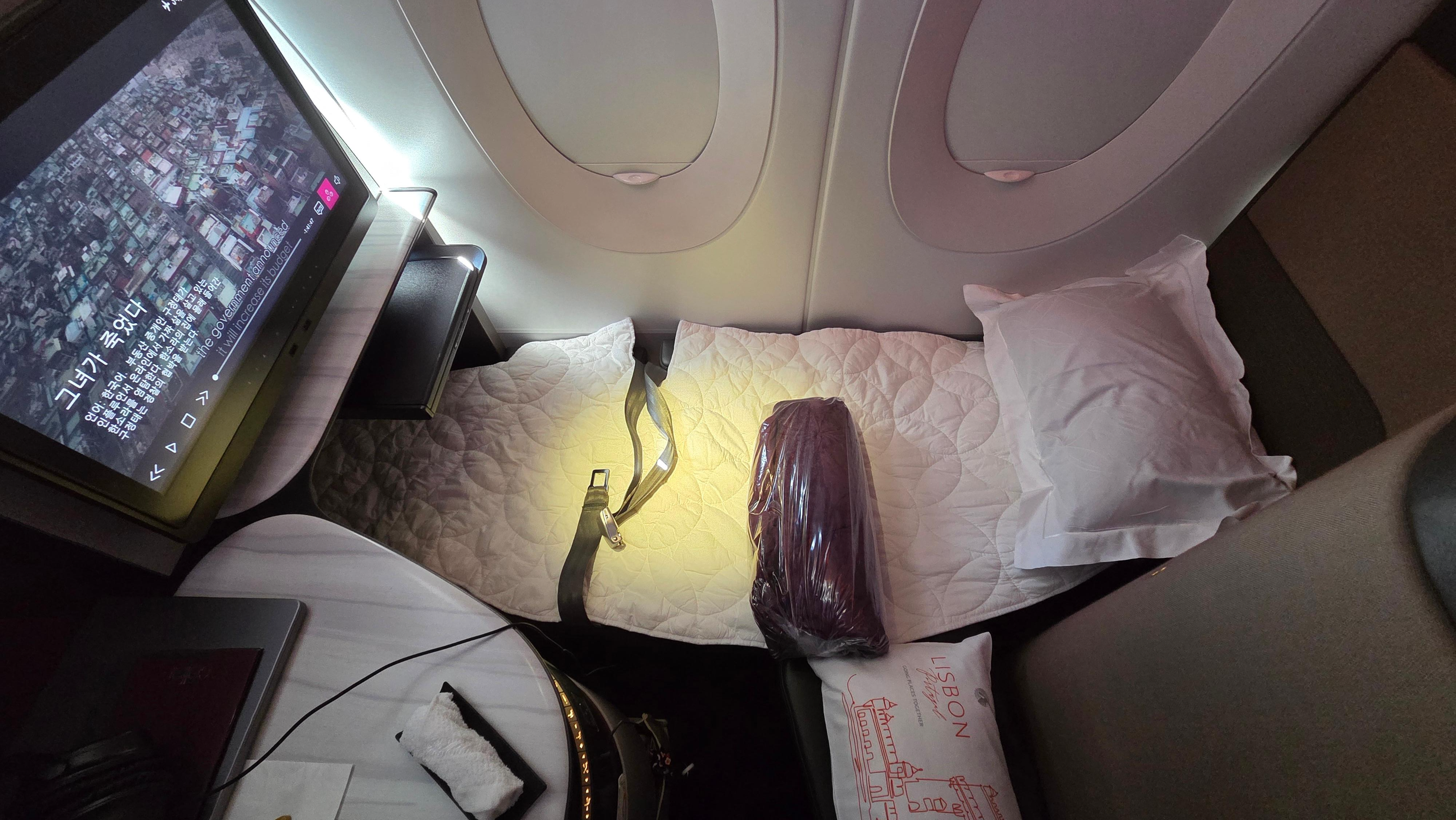 카타르 항공 A350-1000 비즈니스 클래스 Q스위트 좌석을 눕혔을 때 3