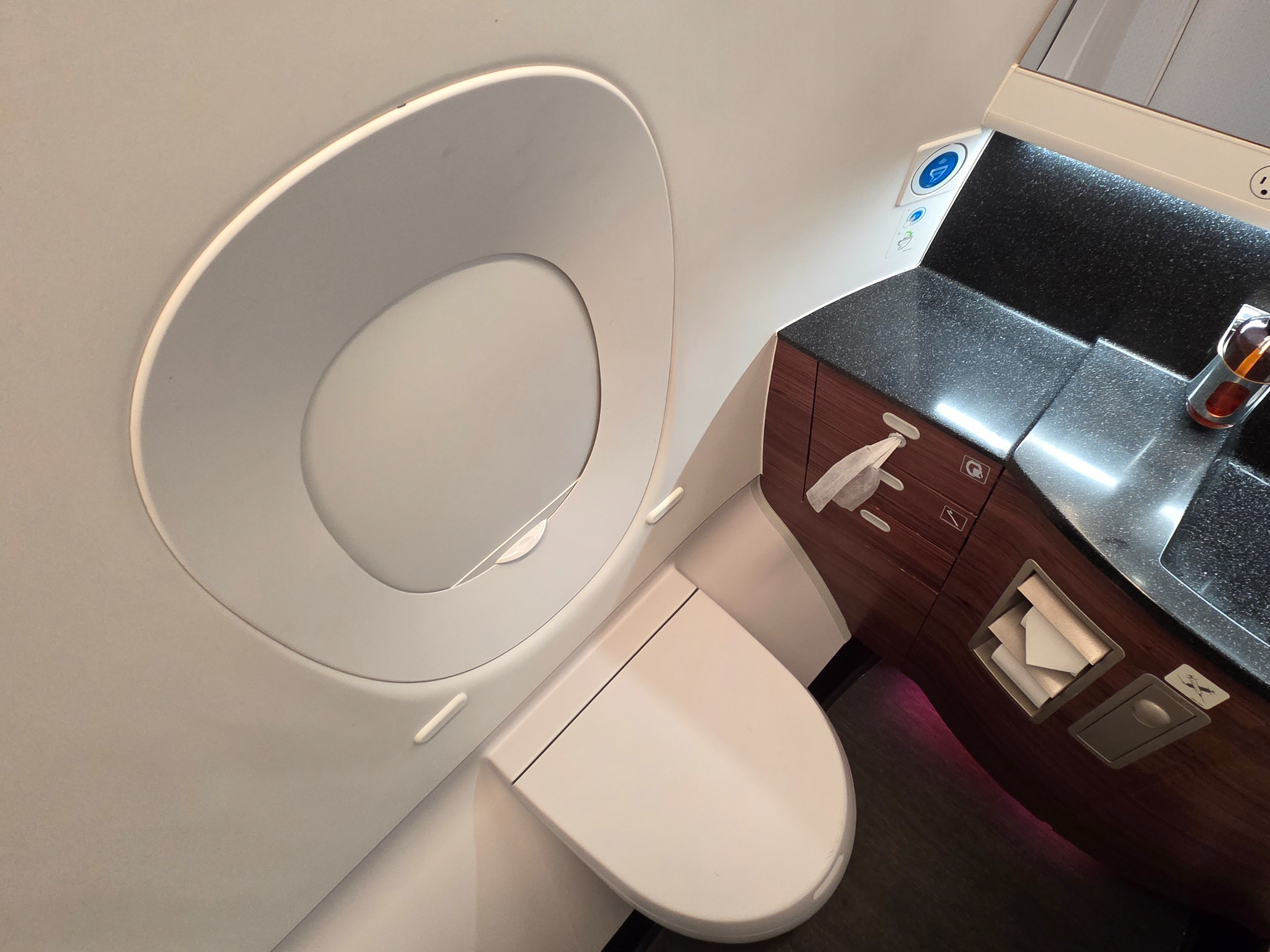 카타르 항공 A350-1000 비즈니스 클래스 전방 화장실