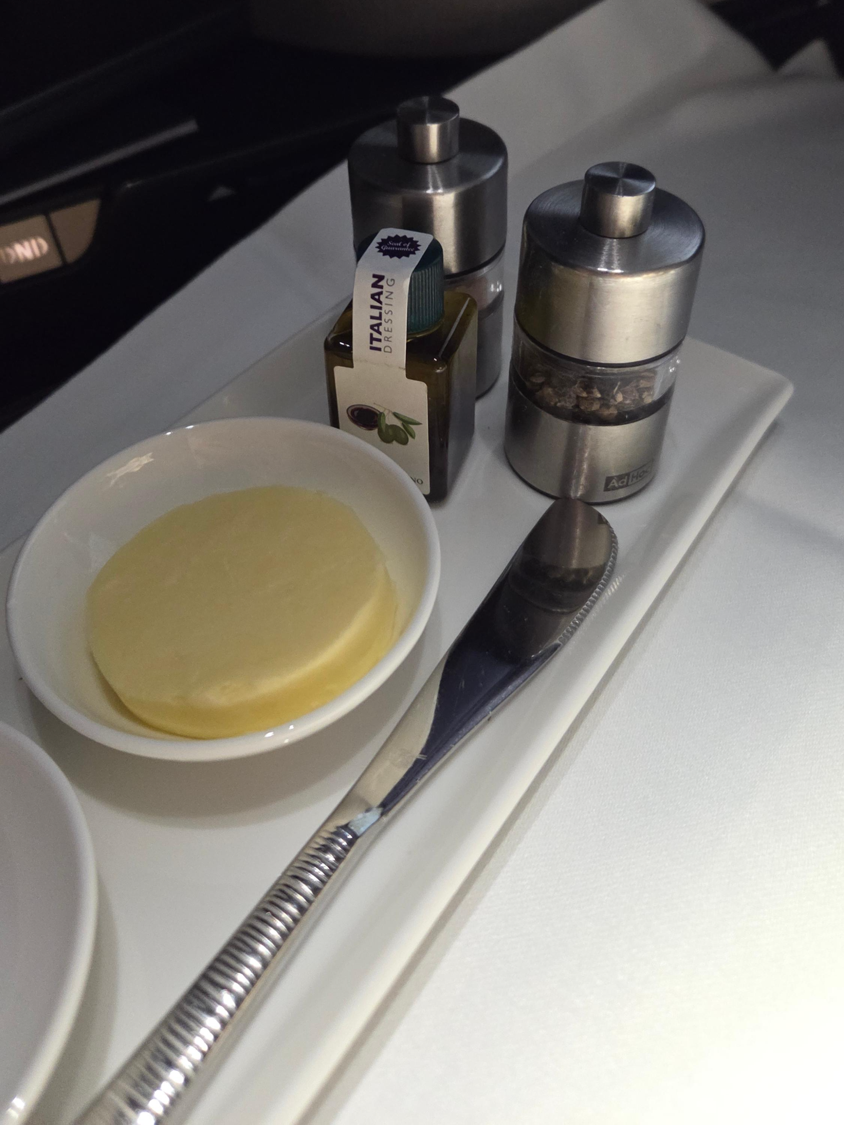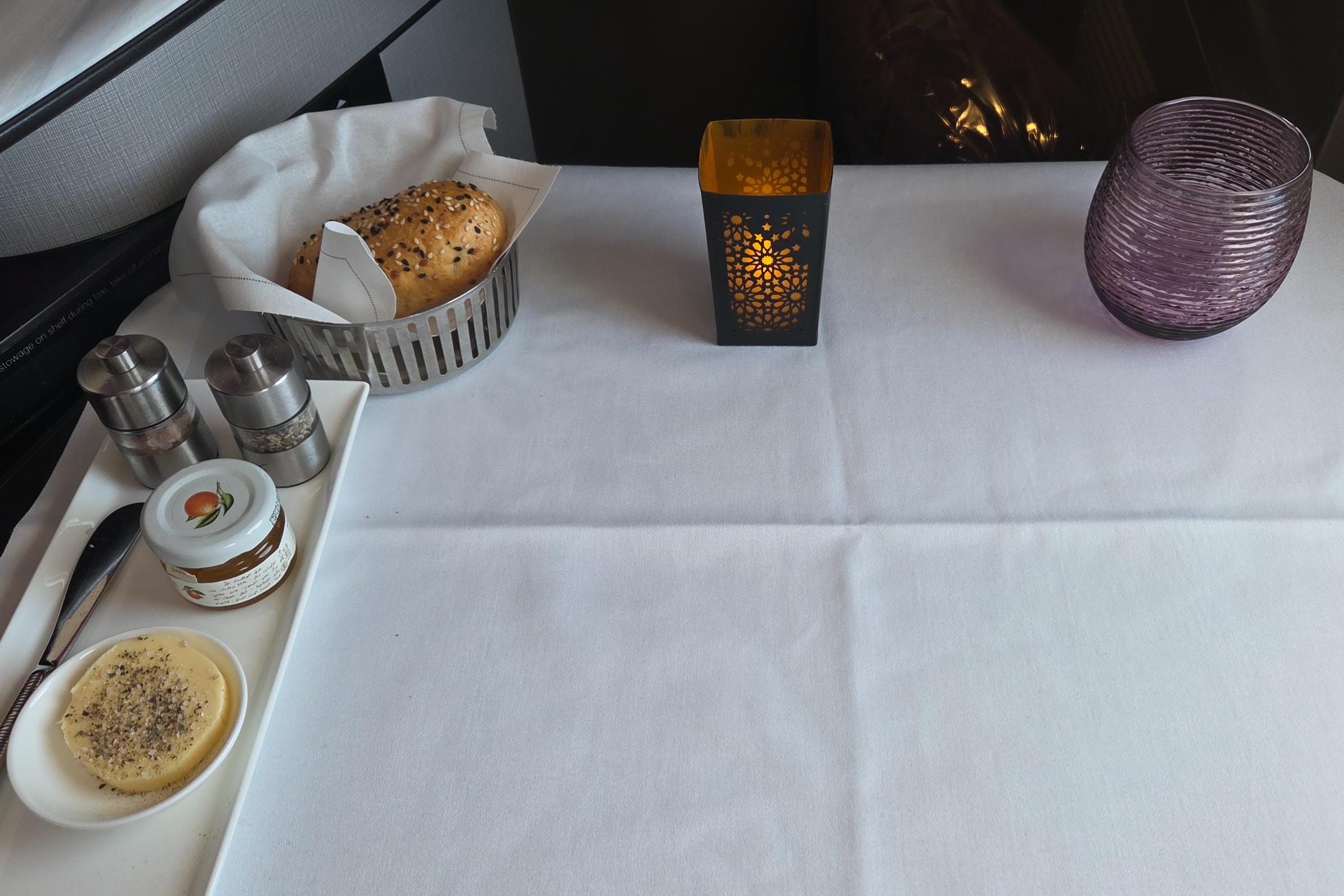 카타르 항공 장거리 비즈니스 클래스 기내식 빵과 버터, 오렌지 마멀레이드