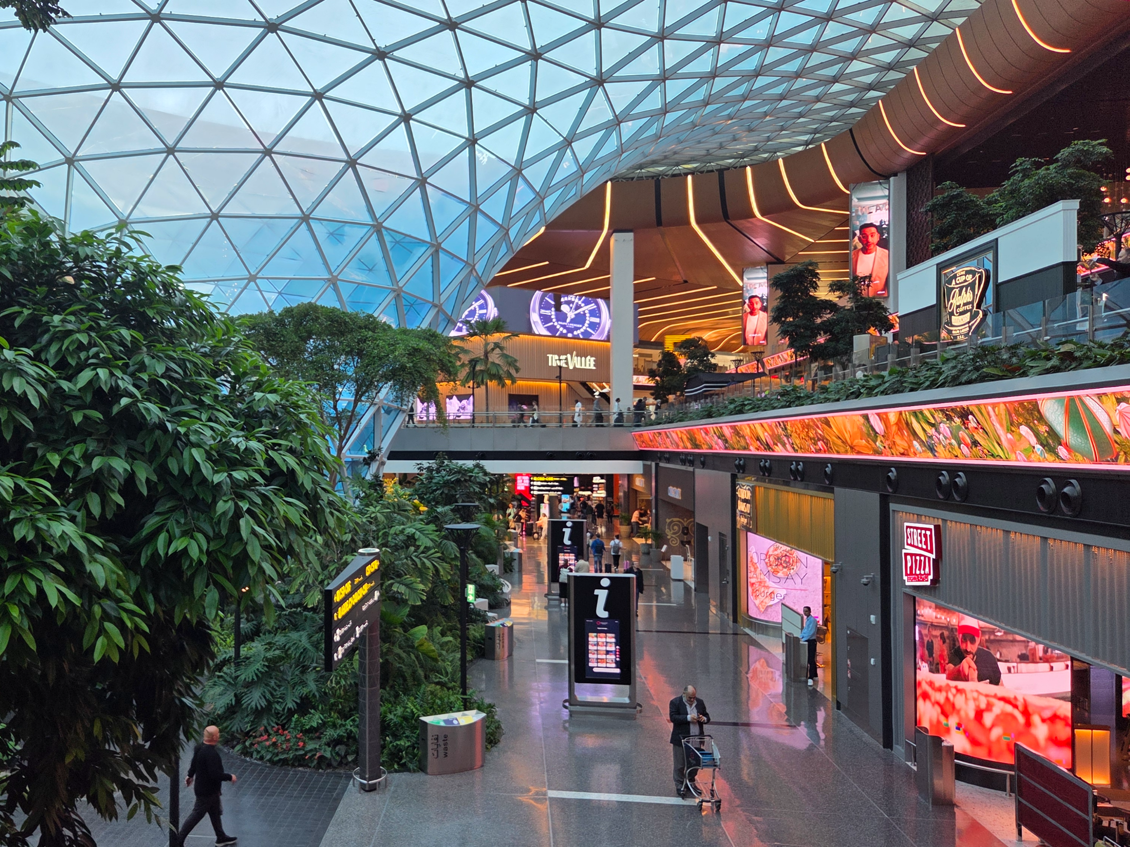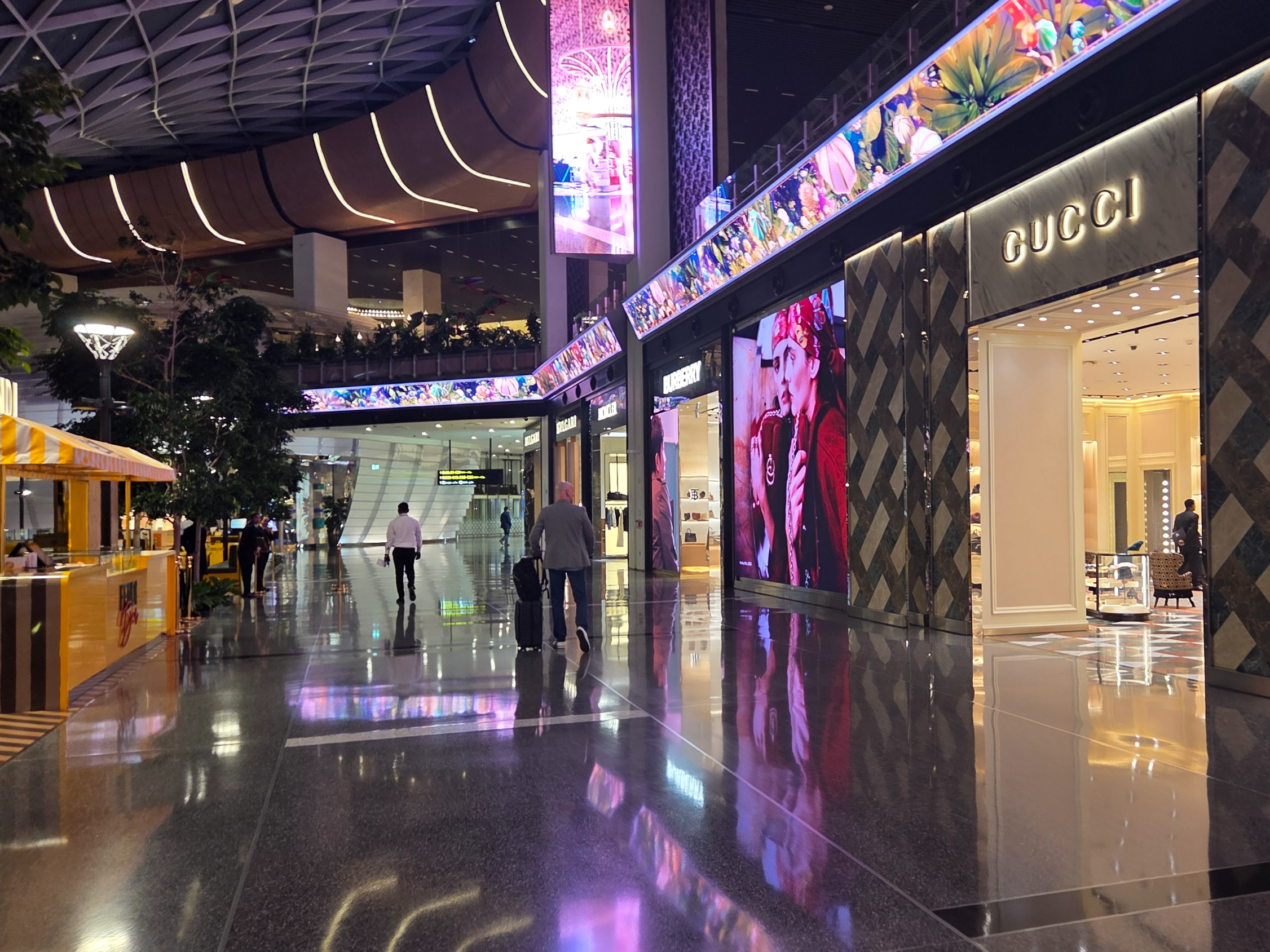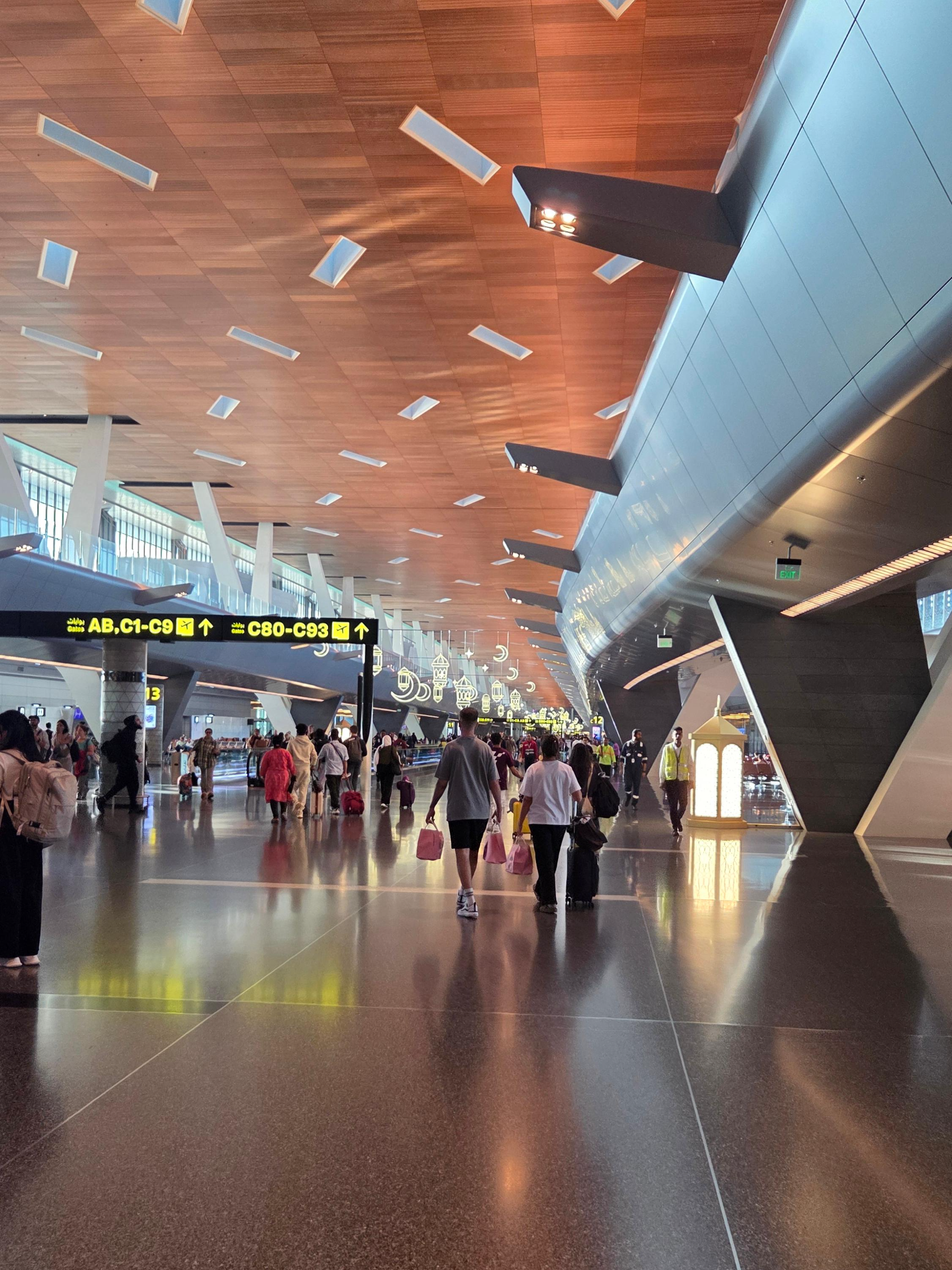 도하 하마드 국제공항 출발 안내판과 더 가든 도하 하마드 국제공항에서의 환승은 어렵지 않은 편입니다. 비행기에서 내려 한층 올라간 다음, 환승 사인을 따라서 쭉 가다 보면 환승 보안 검색대가 나옵니다. 일등석과 비즈니스 클래스 탑승객의 경우 전용 환승 보안 검색대를 이용할 수 있었는데, 저의 경우는 처음 나오는 환승대가 모든 승객이 이용할 수 있는 보안 검색대였고, 조금 더 걸어가면 나오는 보안 검색대가 프리미엄 캐빈 승객 전용 보안 검색대였습니다. 보안검색을 마치고 나면 바로 더 가든이 나오게 됩니다. 인천공항에서 체크인을 하는 경우, 보딩 패스에 탑승 게이트가 나오지 않는 경우도 있으니 반드시 탑승 게이트를 확인하신 후 더 가든으로 가시는 걸 추천드립니다.