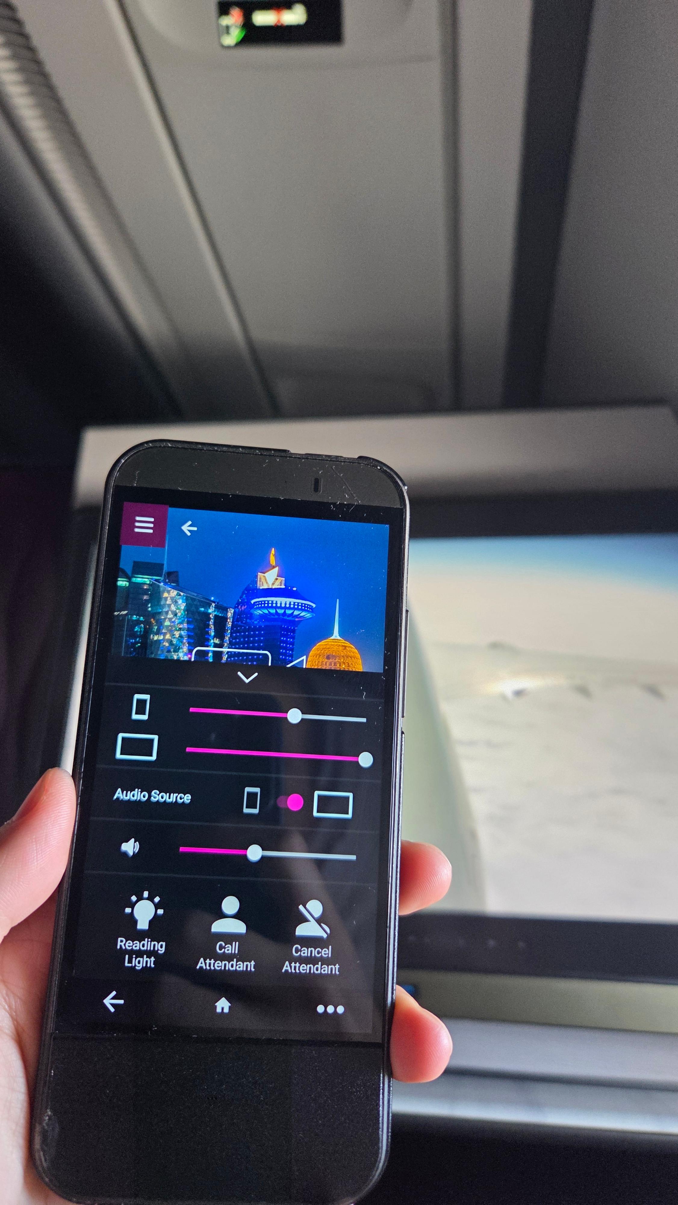 카타르 항공 A350-1000 비즈니스 클래스 Q스위트 기내 엔터테인먼트 시스템 Oryx One 편리했던 기능으로는 기내 엔터테인먼트 시스템과 탑승객의 스마트폰을 연결해서 리모컨처럼 사용하는 Oryx One이라는 기능이었습니다. 처음에는 '굳이 이런 기능을?'이라는 생각이었는데, 사용하다보니 오히려 모니터 리모컨보다 더 자주 사용하게 되었습니다. 딜레이도 별로 없고 빠릿빠릿해서 리모컨보다 나은 부분도 있었습니다.